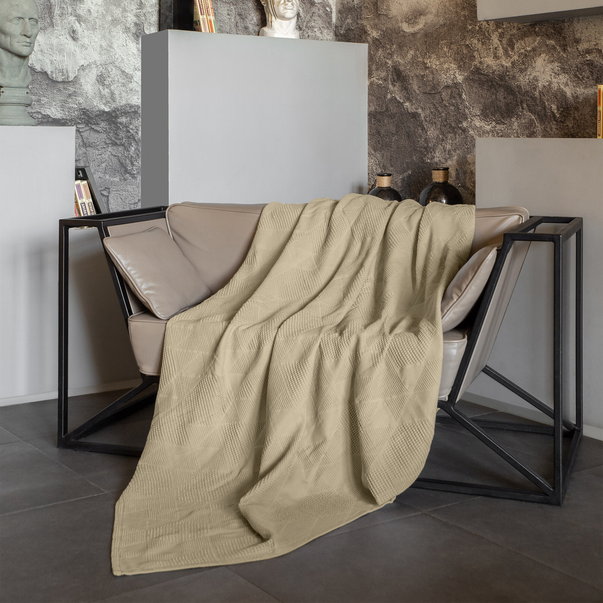 Жаккардовый плед Verossa оттенок "Серо-бежевый" 180х190 из 100% хлопка, плотность 260г/м2