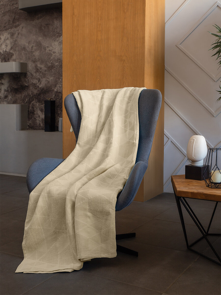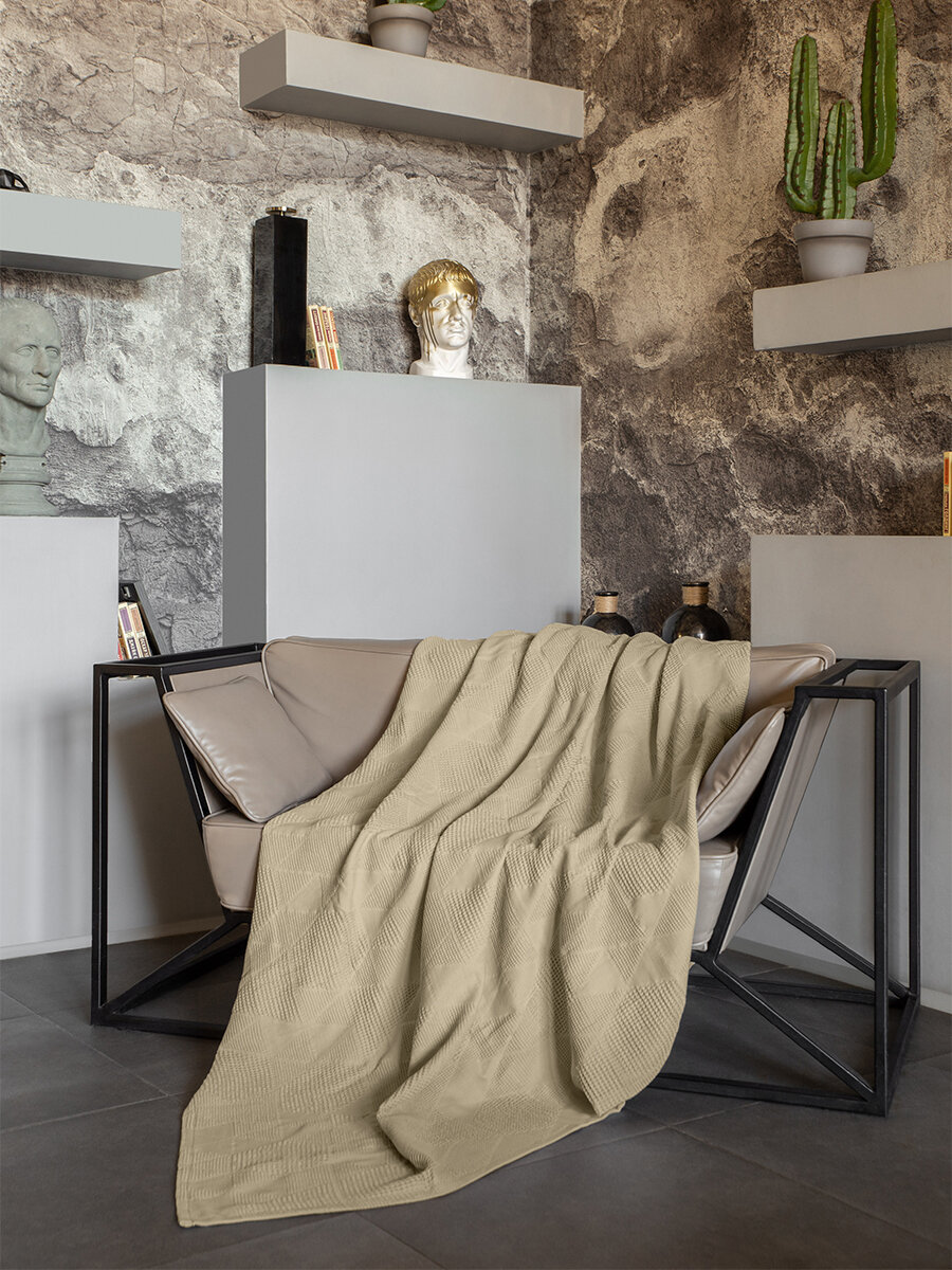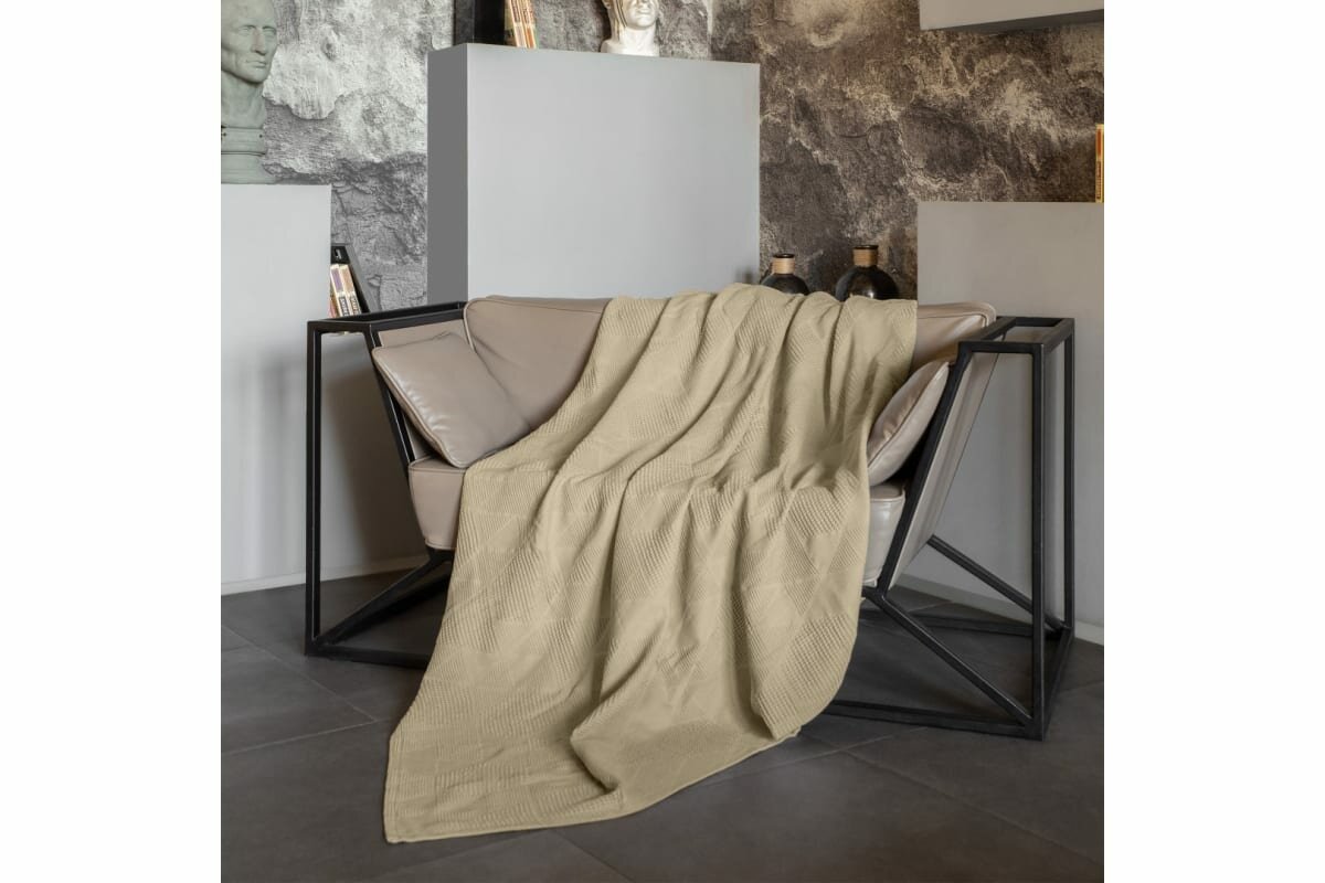 Жаккардовый плед Verossa оттенок "Серо-бежевый" 180х190 из 100% хлопка, плотность 260г/м2