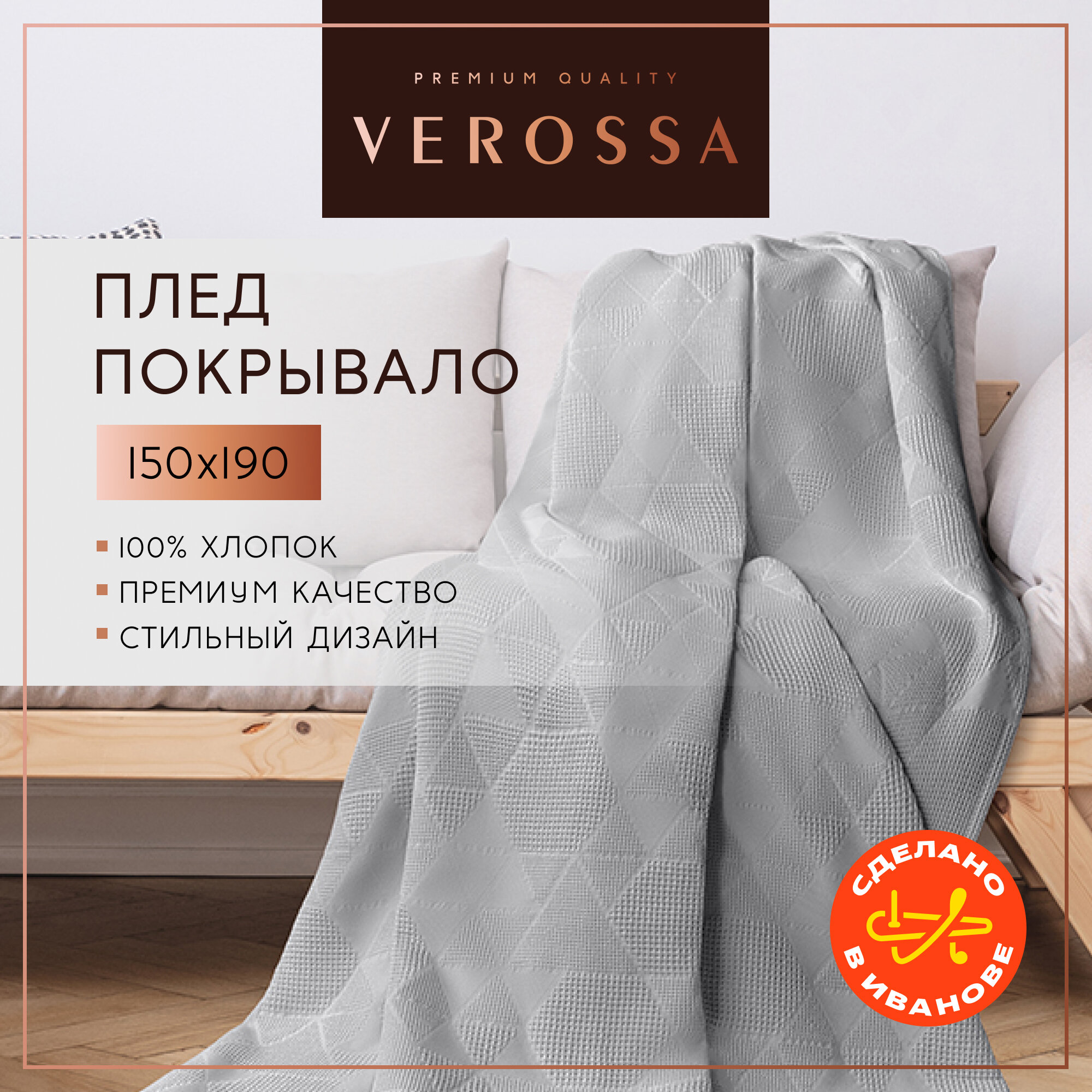 Купить Verossa Плед жаккардовый 150/190 Холодный серый 734317