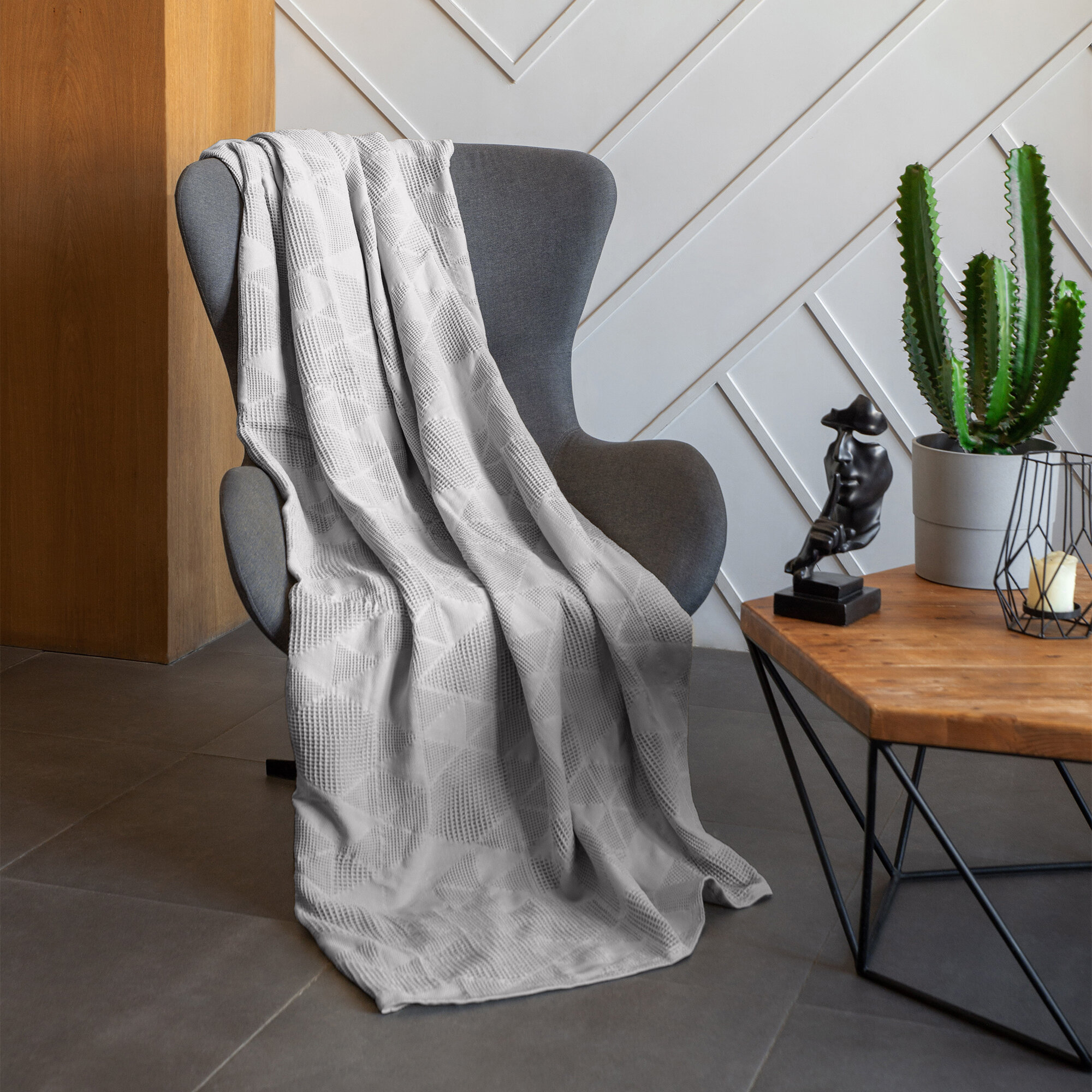 Плед Verossa жаккардовый, 150 х 190 см, холодный серый