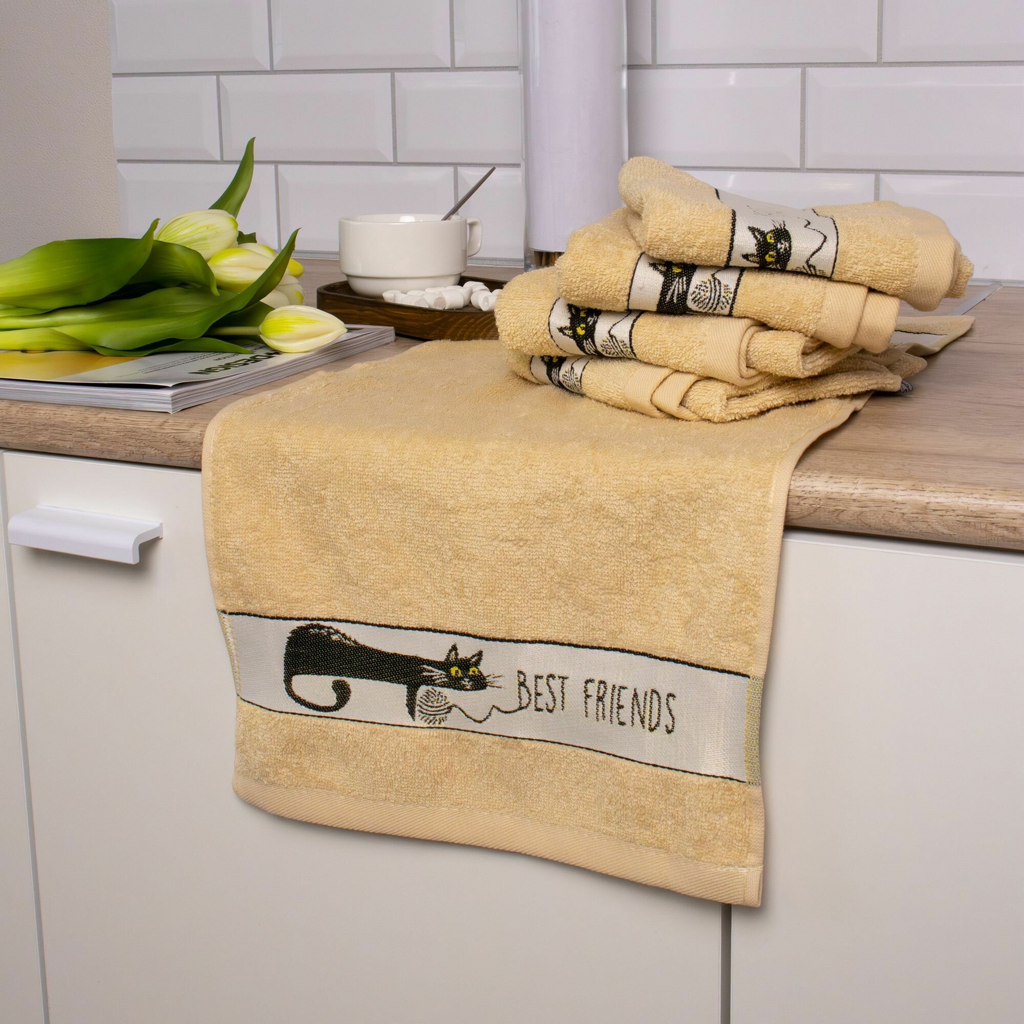 Полотенца махровые кухонные - 5 шт, 30х60 см, Китчен, кошка / экрю интересное: