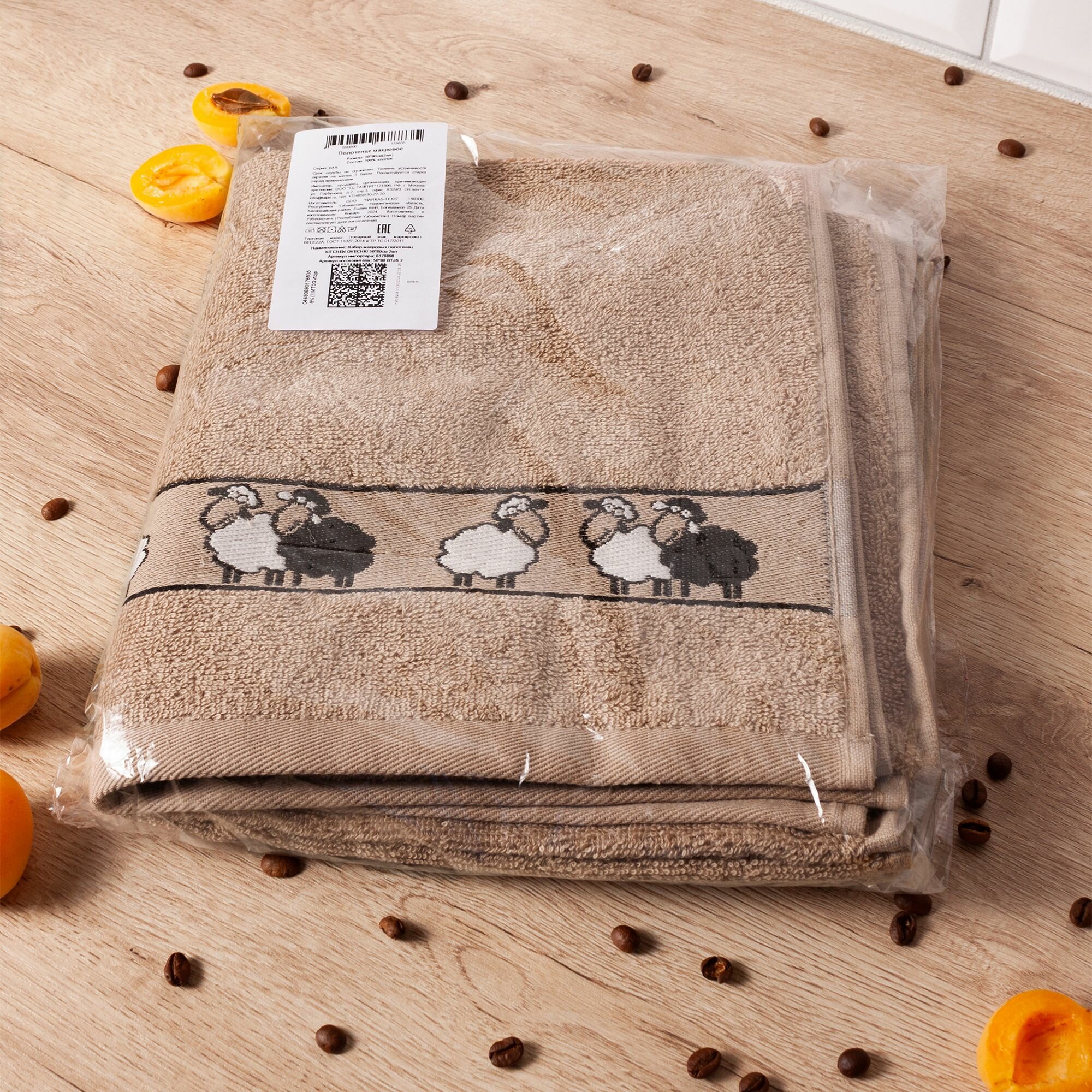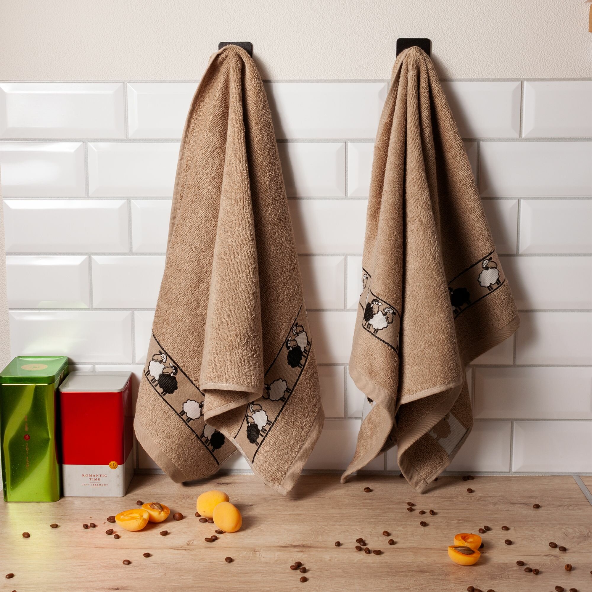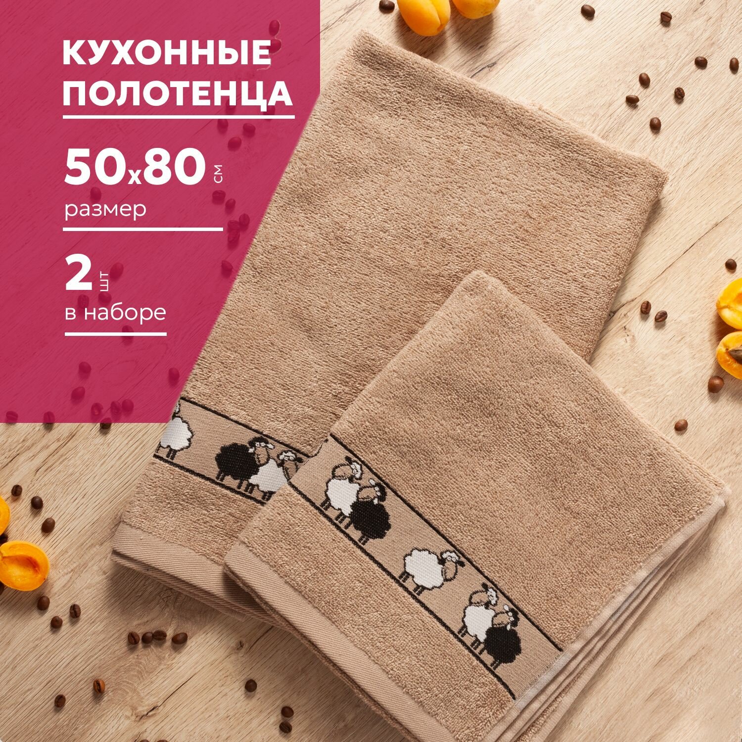 Полотенца махровые кухонные 50х80 см, набор 2 шт, Китчен, овечки / коричневые интересное: