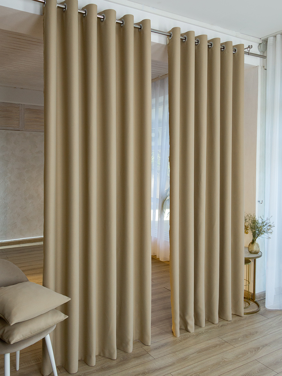 Комплект штор Блэкаут на Люверсах 500 х 500 см Амадео цвет Бежевый / ширина 250 / высота 500 / в зал, спальню, комнату, гостиную, на кухню занавески на окна, портьеры в квартиру