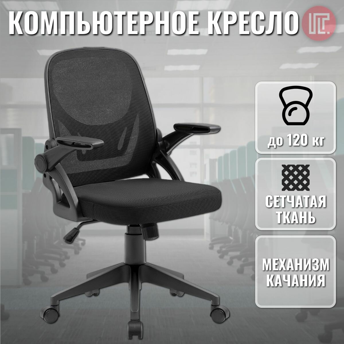 Офисное кресло Office Черный,сетка,регулир.подлокот.