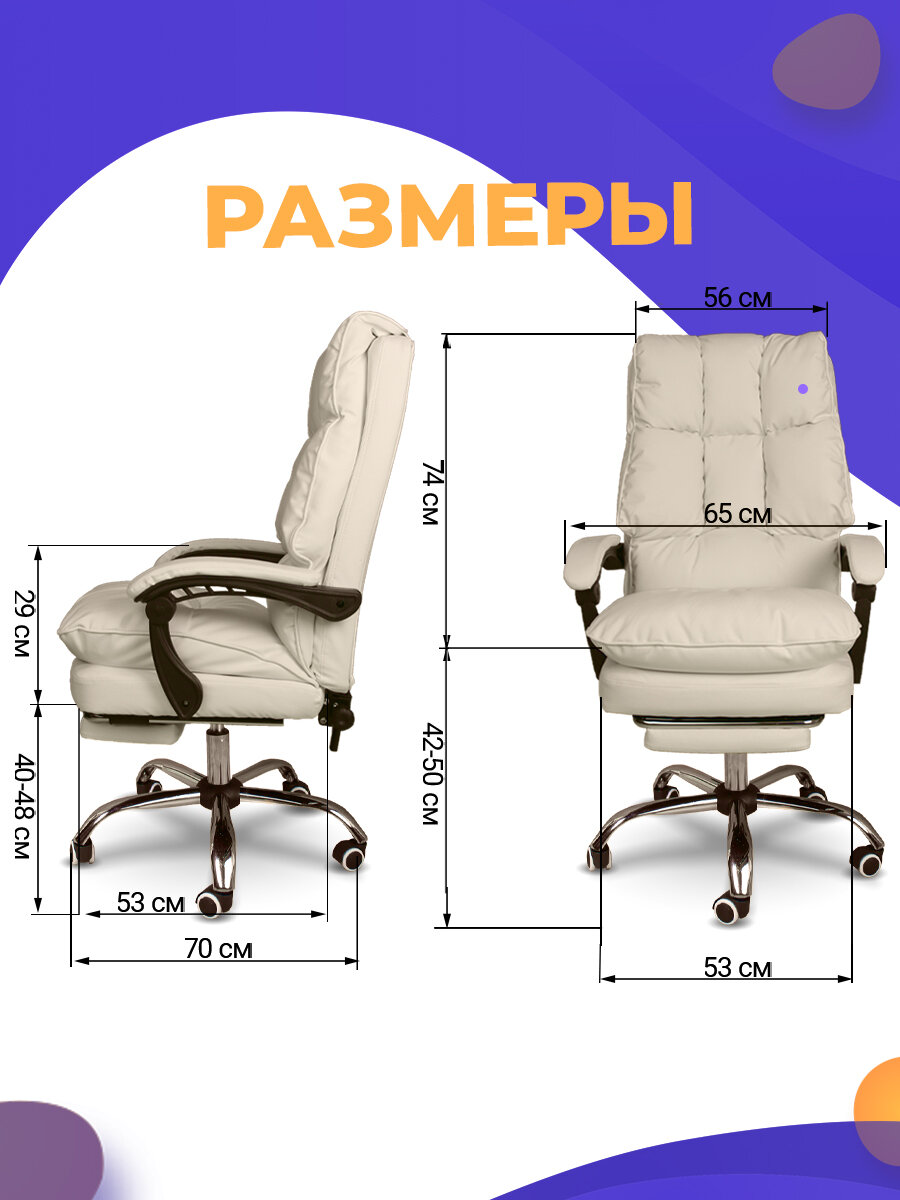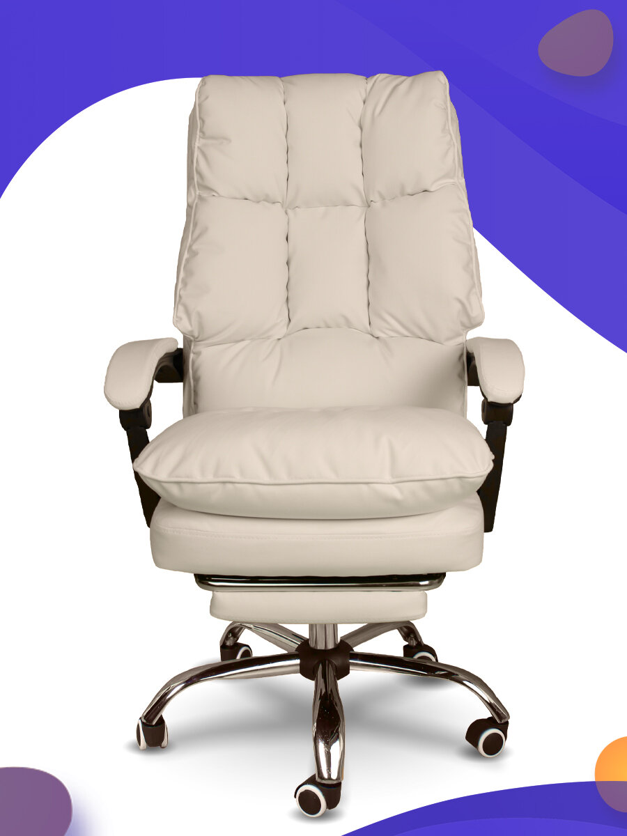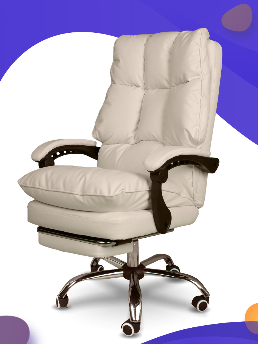 "Кресло для дома и работы" - мягкое компьютерное кресло с подставкой под ноги из экокожи, цвет бежевый