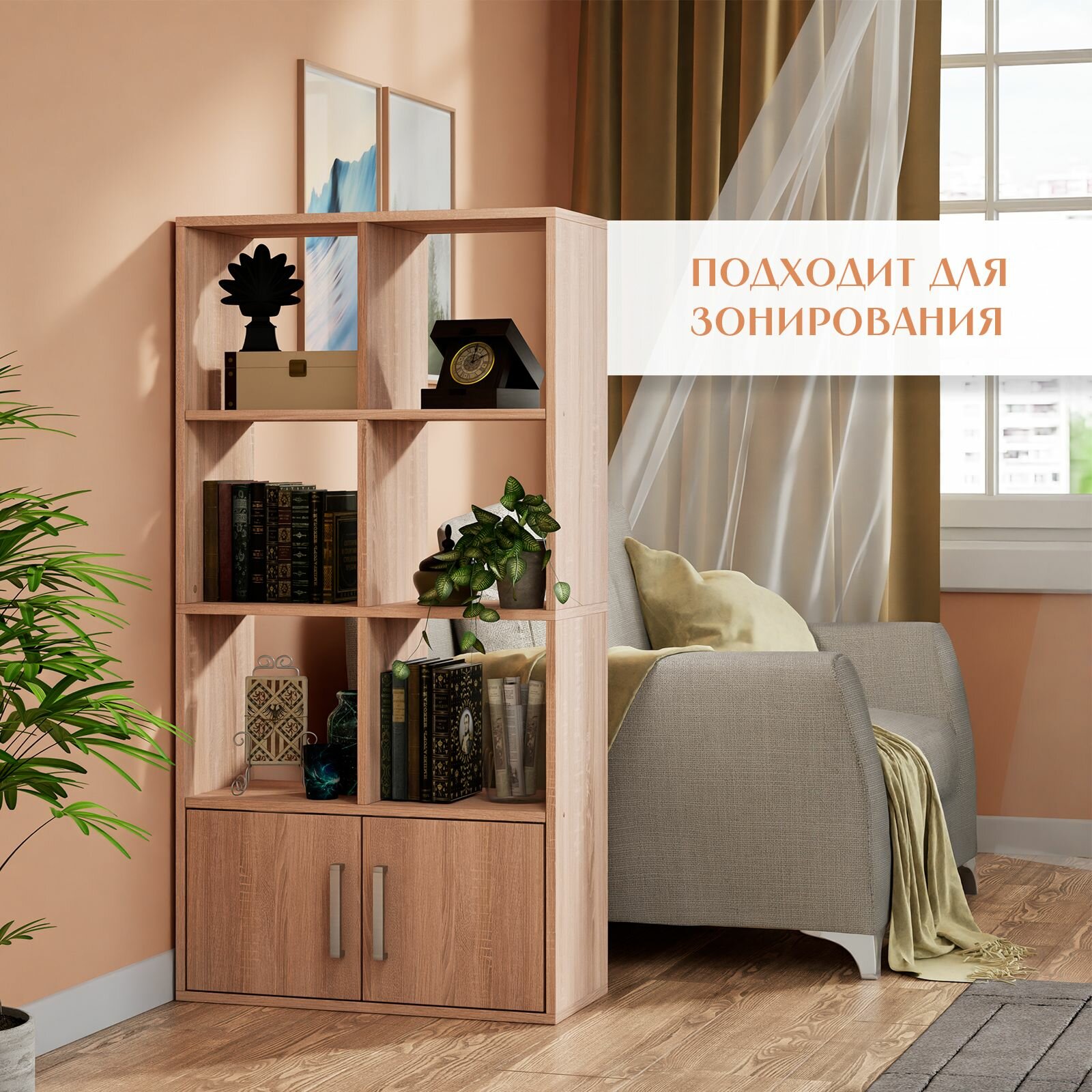 Стеллаж Quatrro 8 секций с дверками Дуб сонома 642х1268х292 интересное: