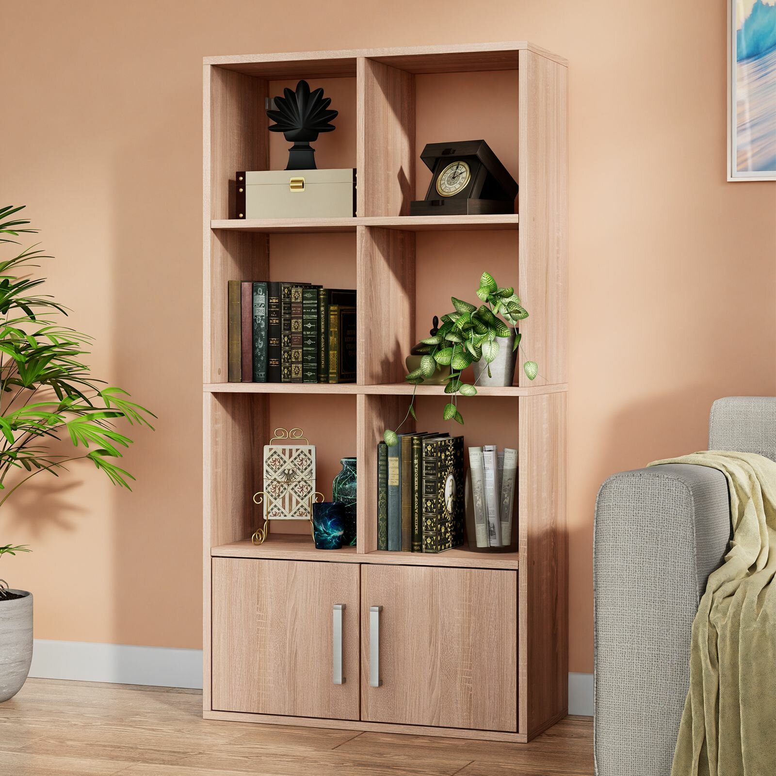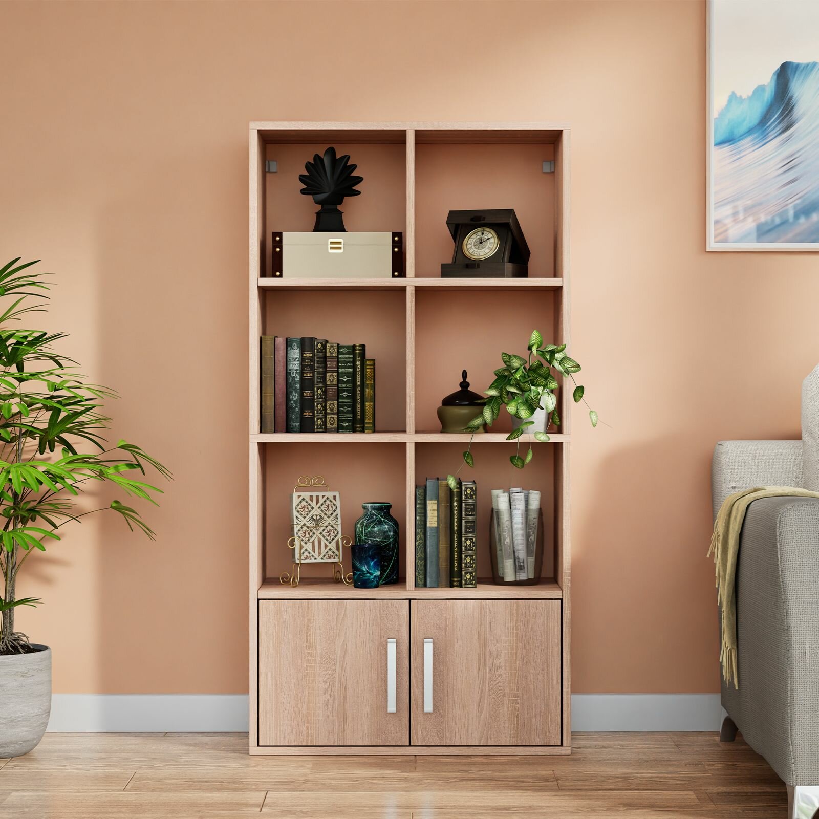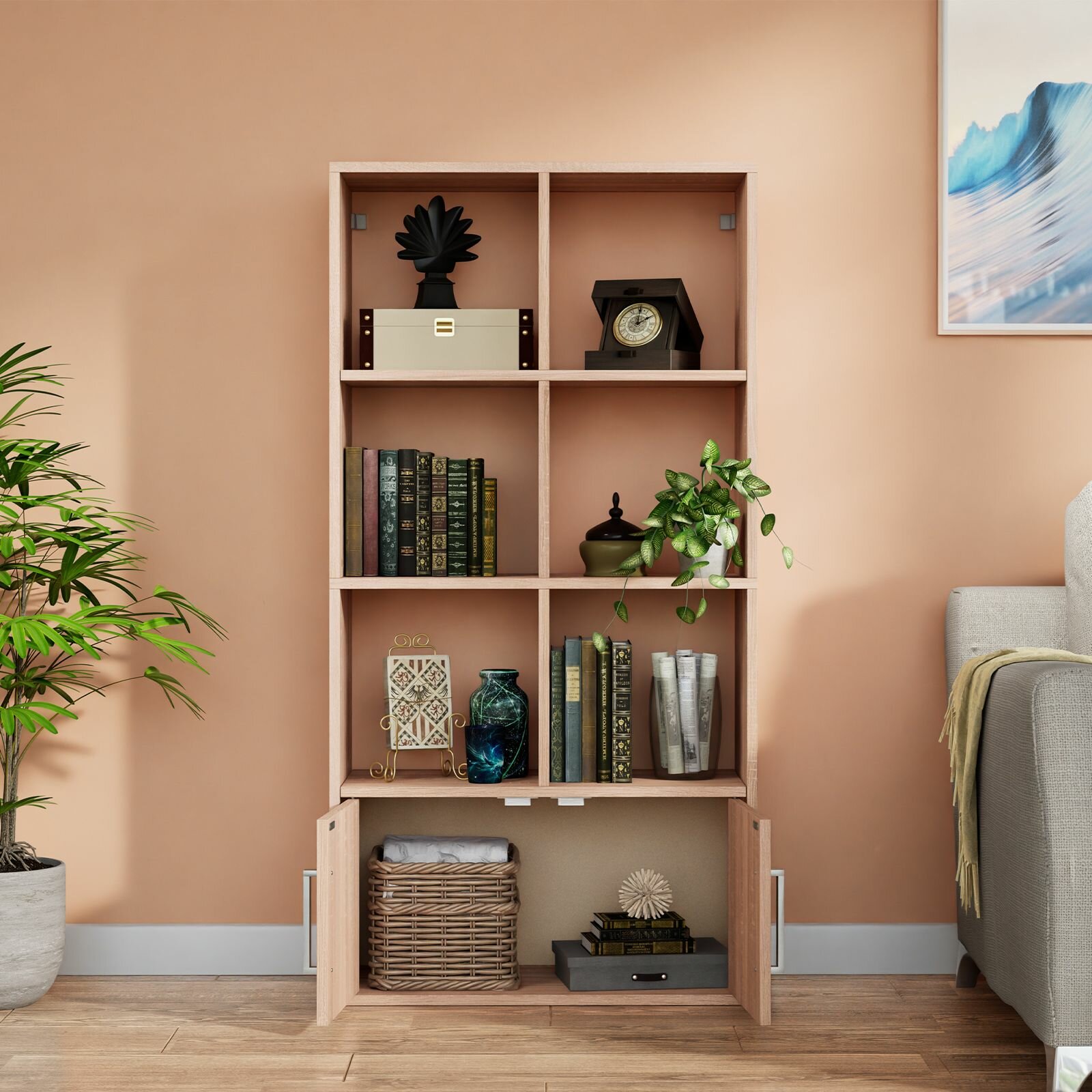 Купить Стеллаж Quatrro 8 секций с дверками Дуб сонома 642х1268х292