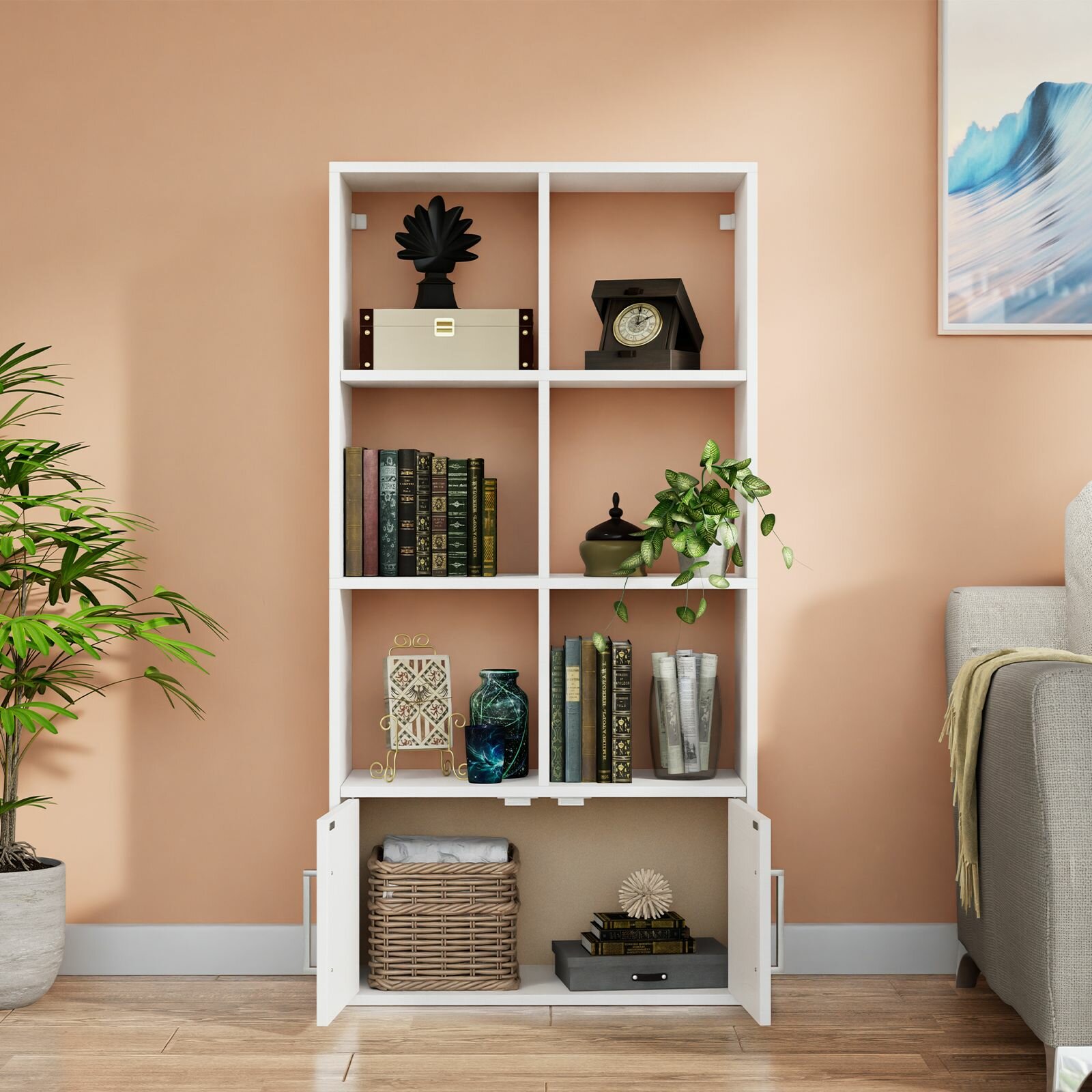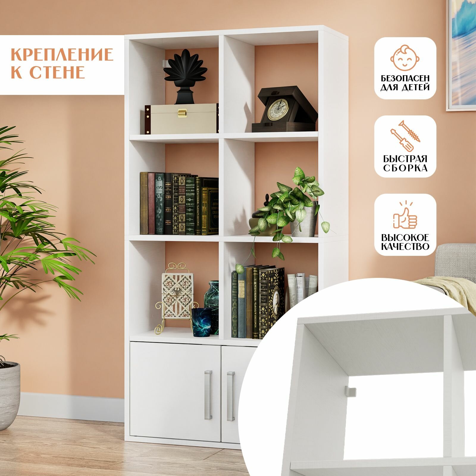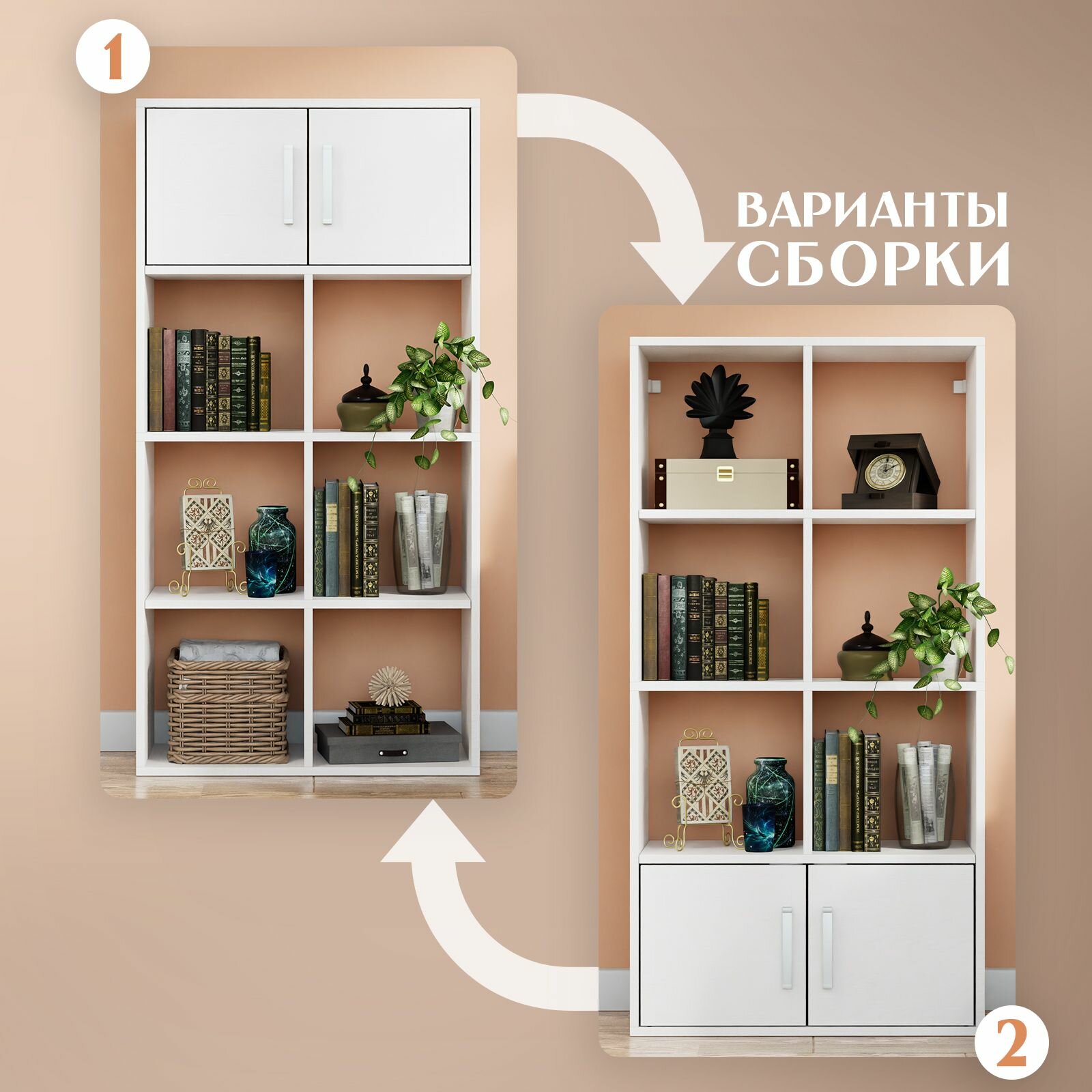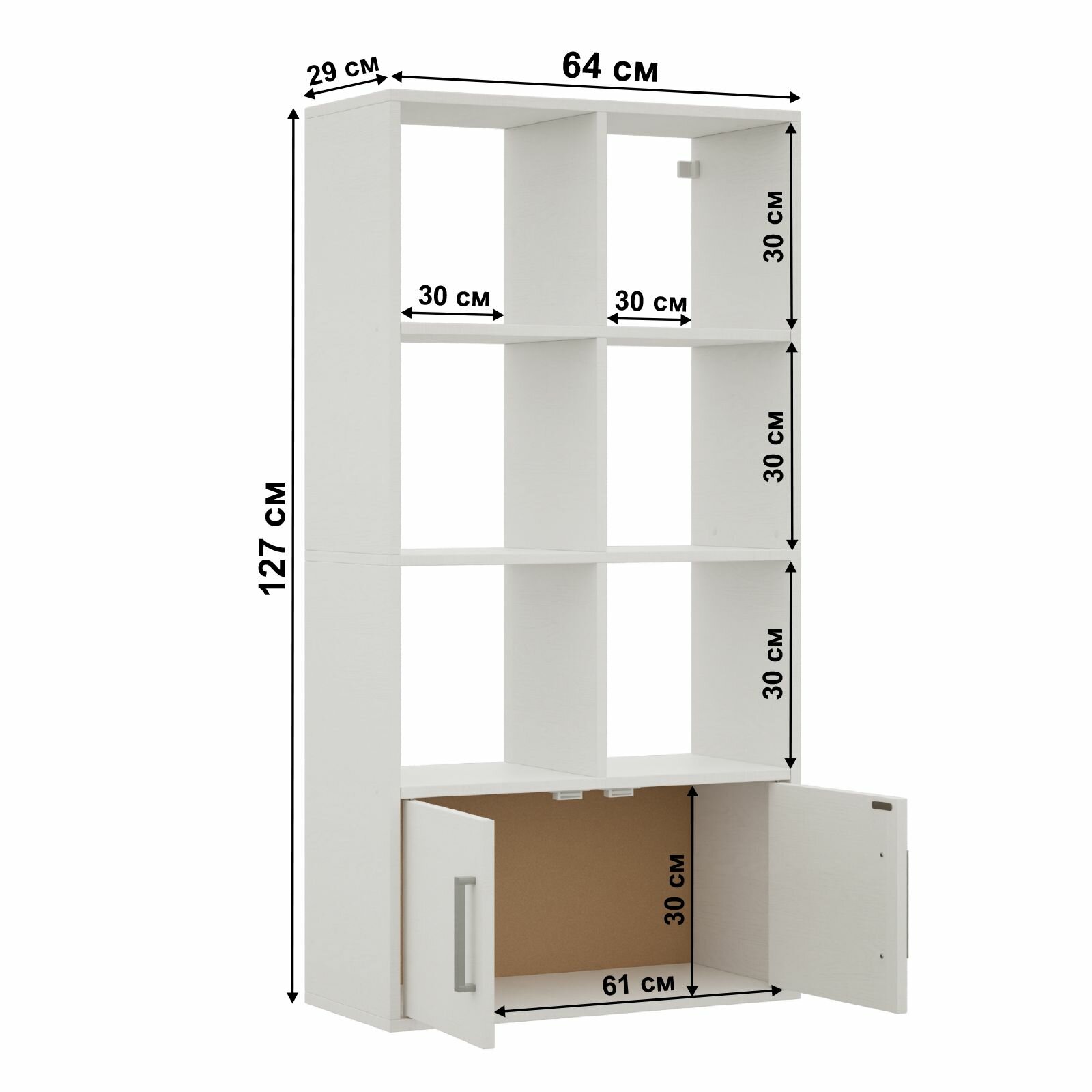 Стеллаж Quatrro 8 секций с дверками Белый с тиснением 642х1268х292 интересное: