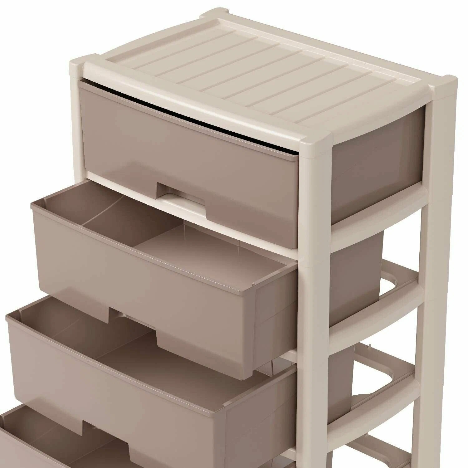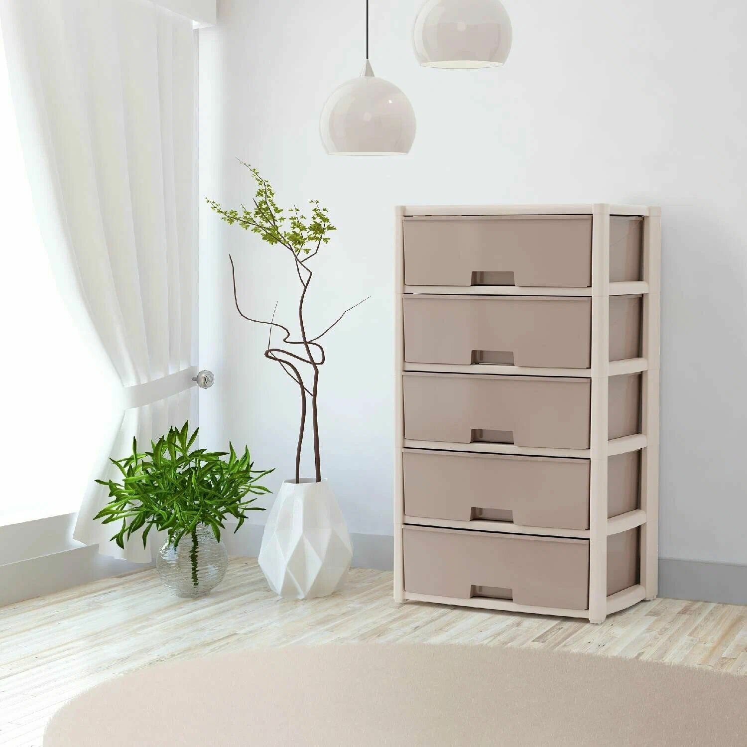 Купить Комод пластиковый универсальный. для вещей, для игрушек 5 секций M8760 Колорит, бежевый, широкий,Альтернатива