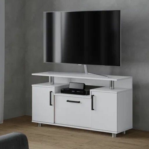 Купить Тумба ТВ-003с Белый с тиснением "Древесные поры" ЛДСП, с открытыми и закрытыми полками, для гостиной, спальни 660х1200х380 тэкс