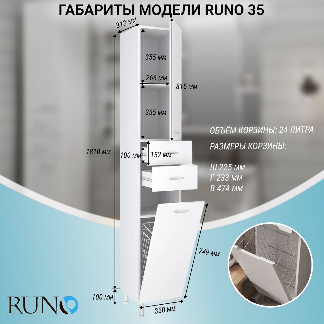 Пенал Runo 35, с бельевой корзиной, левый, белый (00000000128/Вн П19 RUNO)