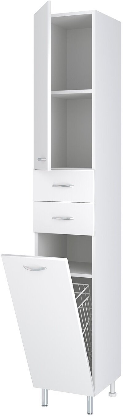 Шкаф пенал Runo Эконом 30 R 00000000126 с бельевой корзиной Белый