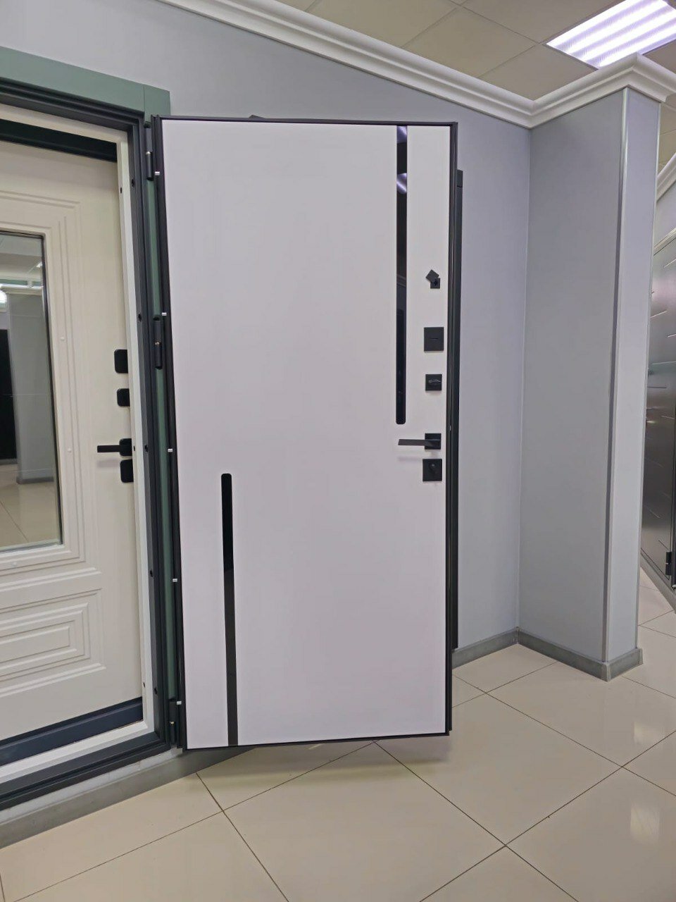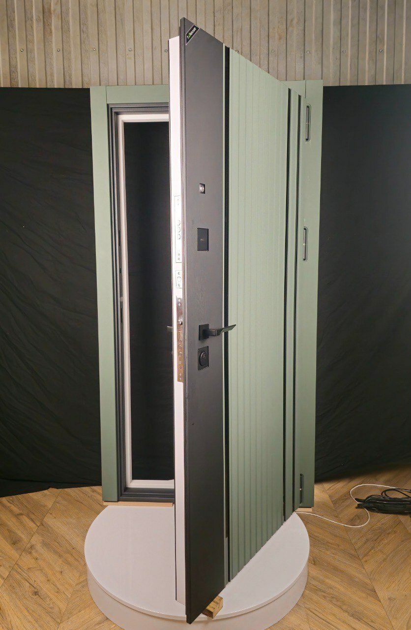Входная дверь Tandoor Морион, МДФ/МДФ, 95х203, левая, белый мат/Шарли грин/черный/зеленый