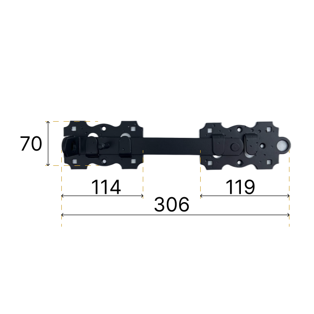 Щеколда большая декоративная (ноэз) ЩБ-250-Л-SL (левая) черный матовый (комплект 2 штуки)