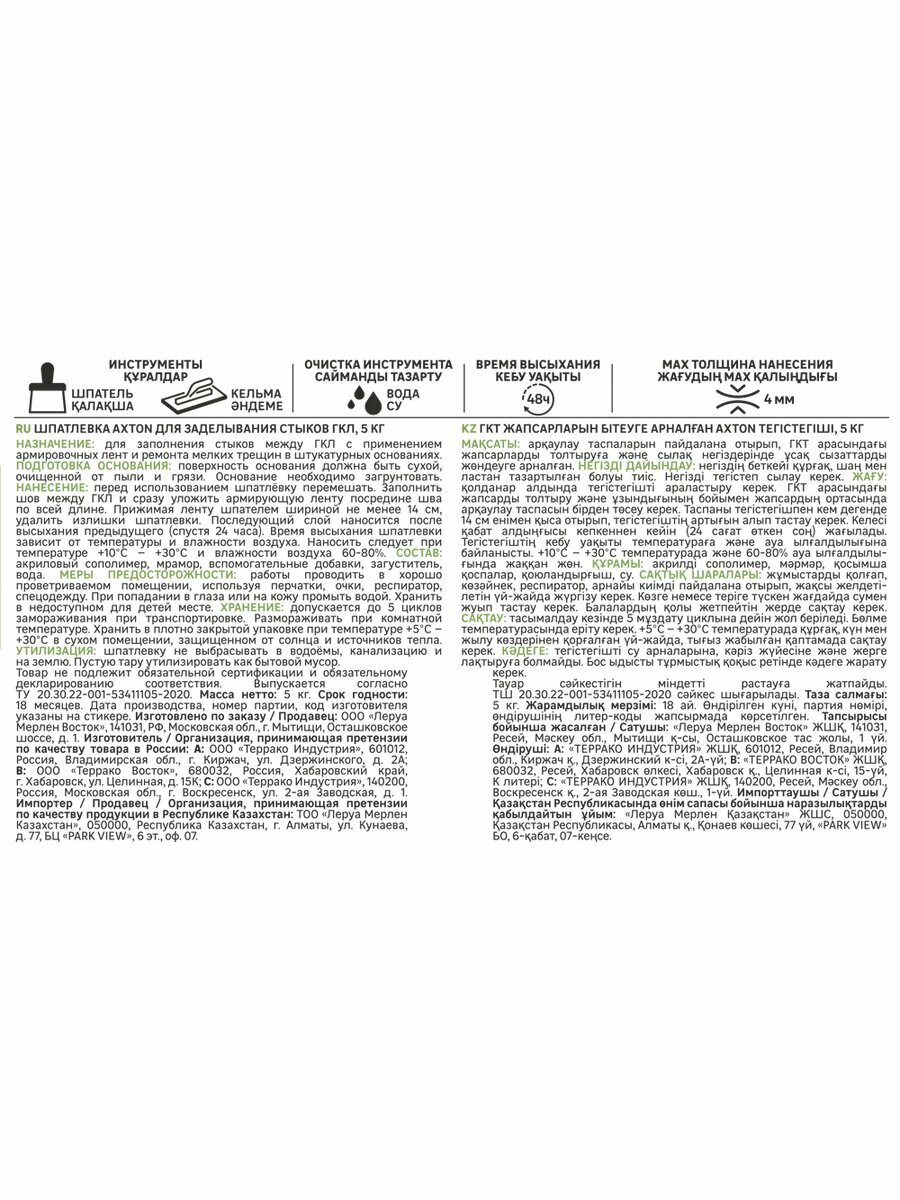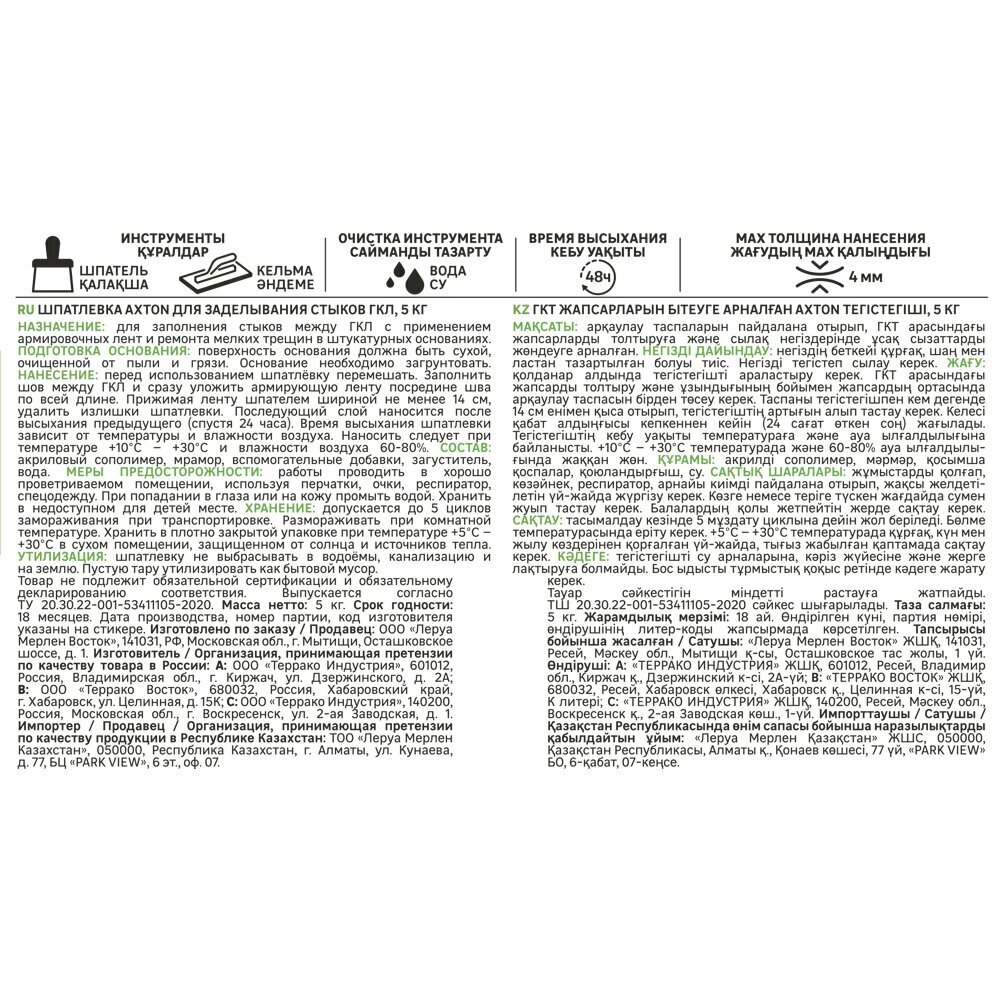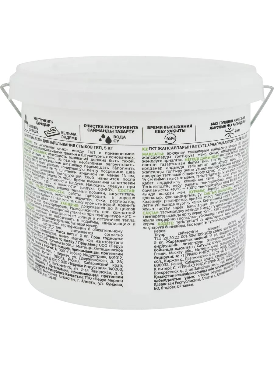 Акстон шпатлевка для стыков гипсокартона белая (5кг) / AXTON шпатлевка для стыков ГКЛ для внутренних работ белая (5кг)