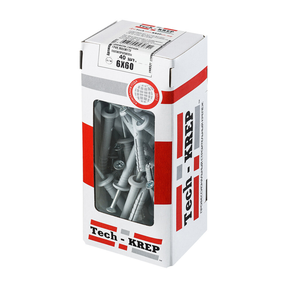 Дюбель-гвоздь Tech-Krep 6х60 мм грибовидная манжета, полипропилен, 40 шт