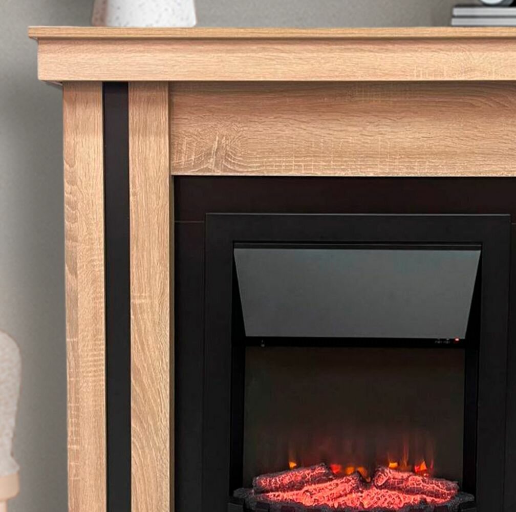Купить Камин электрический ELEKAM NEO в цвете дуб сонома с очагом с пультом, обогревом и звуком потрескивания дров (Электрокамин)
