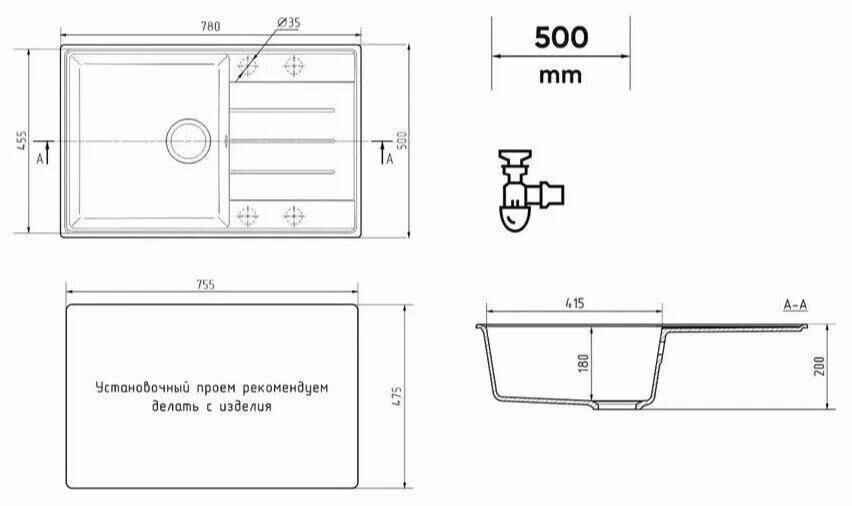 СохранитьКухонная мойка Ulgran Quartz Prima 780-07, уголь интересное: