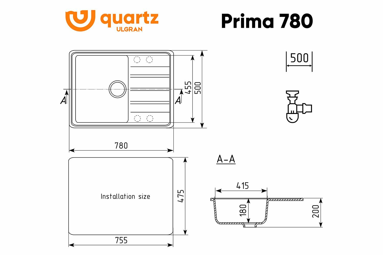Мойка ULGRAN Quartz асфальт (Prima 780-09)