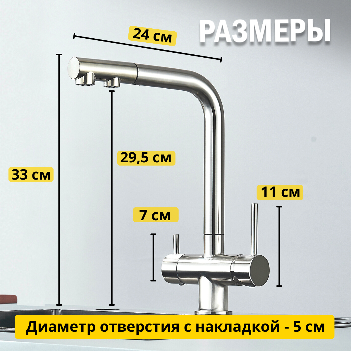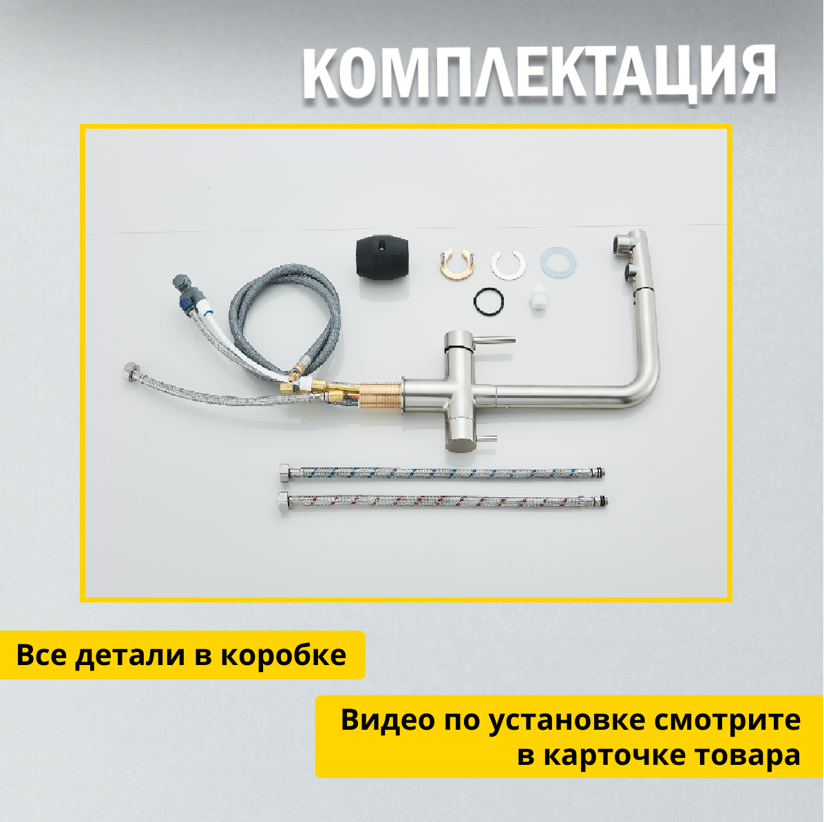 Смеситель для кухни с гибким выдвижным изливом и фильтром хром интересное: