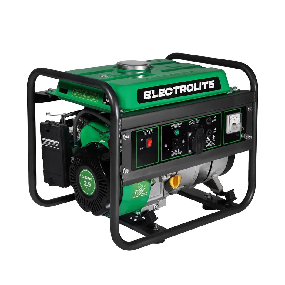 Генератор бензиновый Электрический / бензогенератор Electrolite 1500 (1 фаза, 4-х тактный двигатель, 1.875 кВа максимальная нагрузка , 220 В / 12 В, 1 / 1.2 кВт, 50 Гц, ручной стартер )