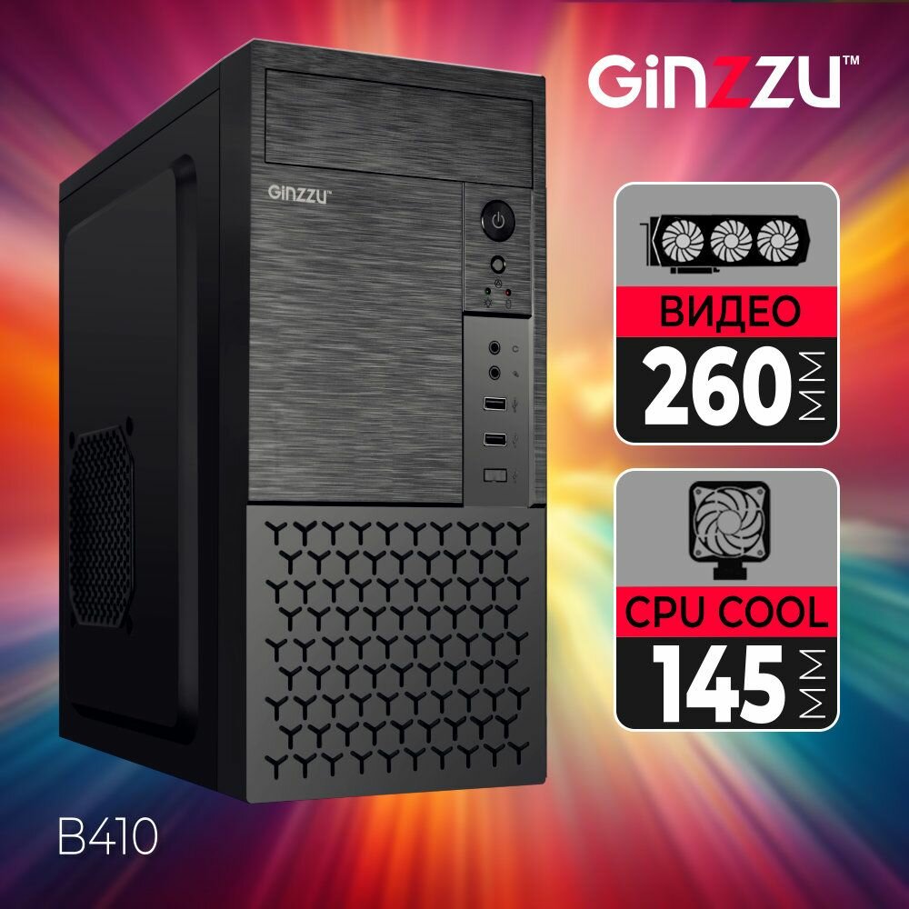 Корпус для ПК Ginzzu B410, Mini Tower, без БП, 2xUSB 2.0, AU, черный интересное: