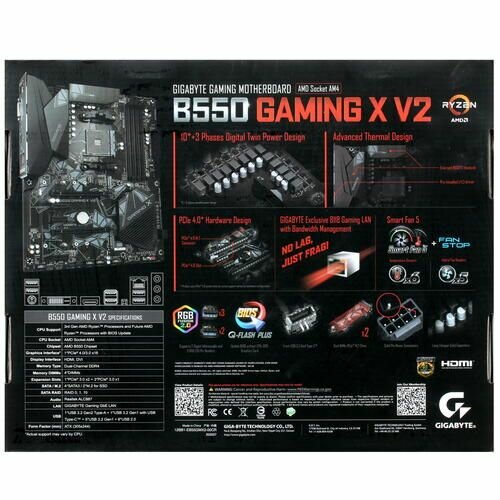 Материнская плата Gigabyte B550 GAMING X V2, Socket AM4, AMD B550, 4xDDR4-3200, DVI-D+HDMI, 2xPCI-Ex