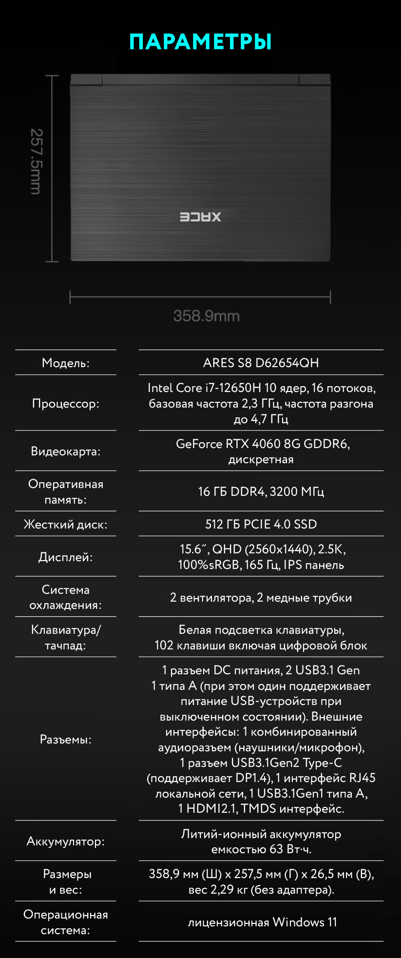 Хасе S8 D62654QH Игровой ноутбук 15.6" QUAD HD, Intel Core i7-12650H, RAM 16 ГБ, SSD 512 ГБ, RTX4060 8G GDDR6, Windows 11, Русская раскладка интересное:
