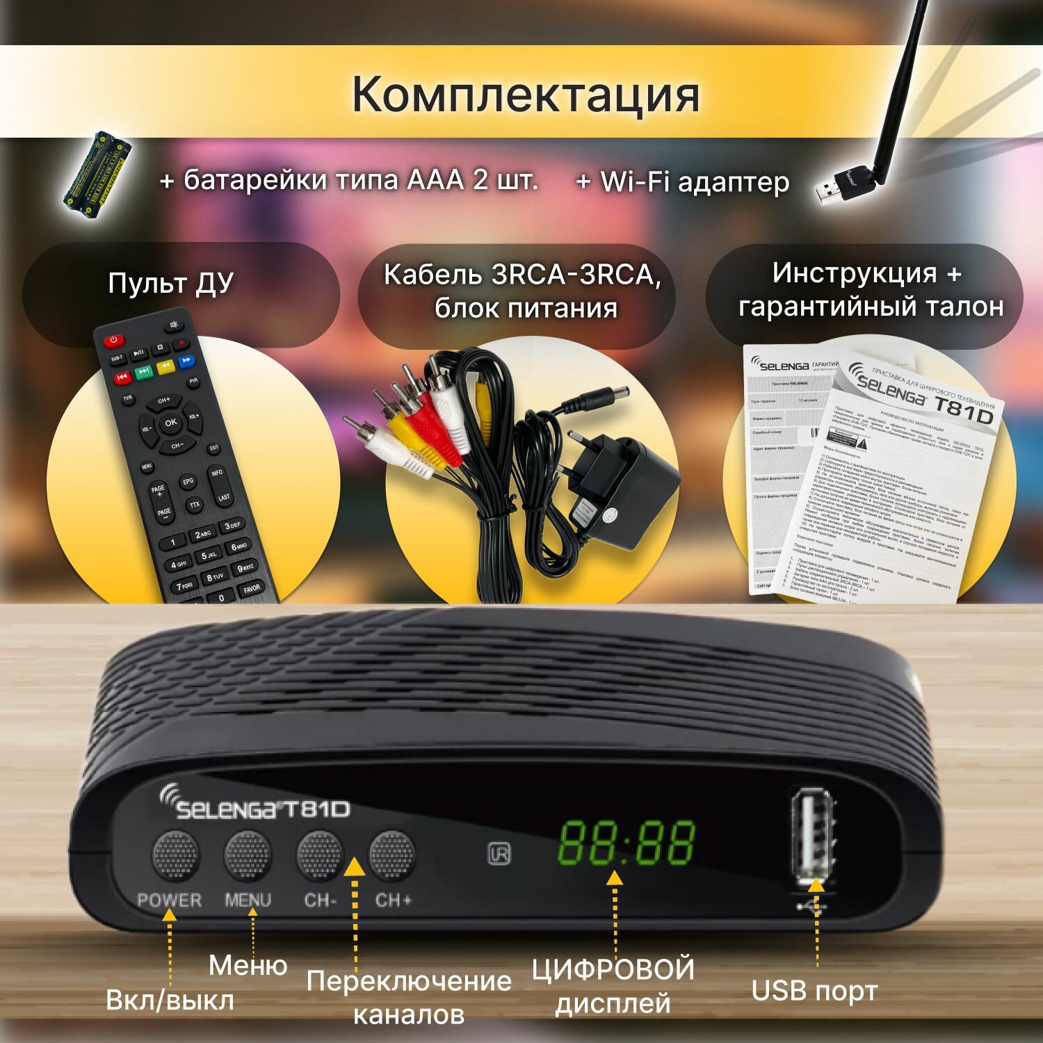 Ресивер для цифрового ТВ SELENGA T81D FM с Wi-Fi адаптером, DVB-T/T2/C, IPTVП, тв тюнер, приставка для тв, эфирная интересное: