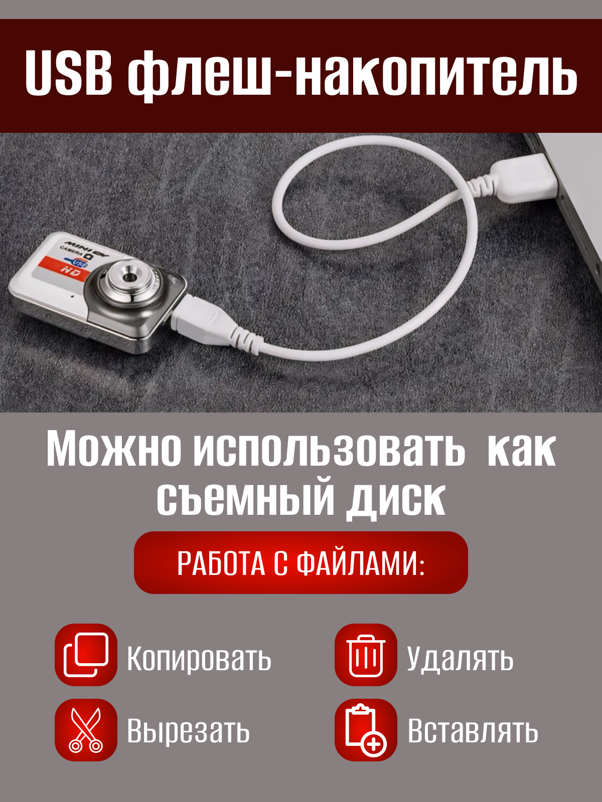 | Дополнительная информация | Можно использовать как флэш-накопитель, емкость аккумулятора 200 мАч, в комплекте: microSD 32 Gb, USB-кабель, инструкция, крепление-брелок, камера |