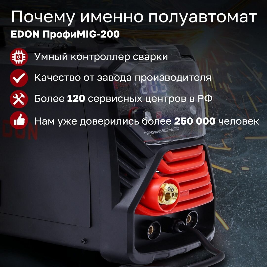 Сварочный аппарат полуавтомат EDON ПрофиMIG-200 7кВт 20-200А, MMA 9,0кВт интересное: