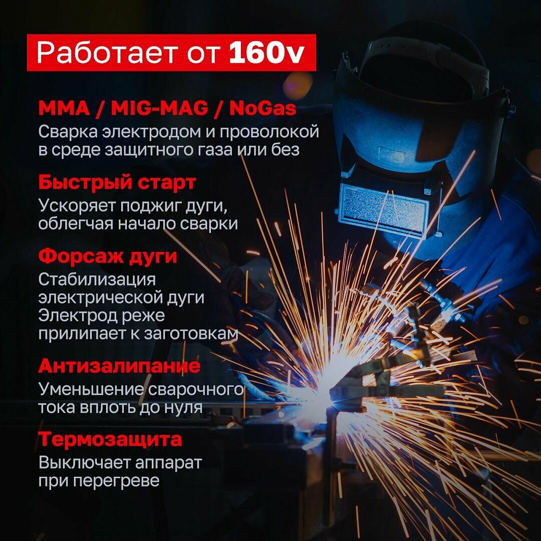 | Вид сварки | Полуавтоматическая сварка (MIG/MAG), Ручная дуговая сварка (MMA) |