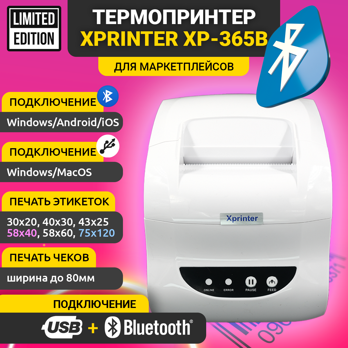 Термопринтер чеков и наклеек Xprinter XP-365B USB + Bluetooth белый (русская версия, EAC) интересное: