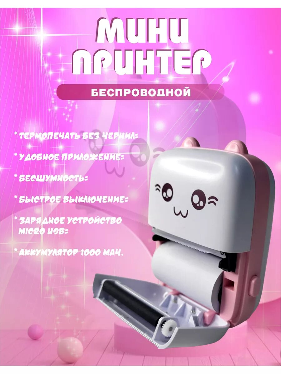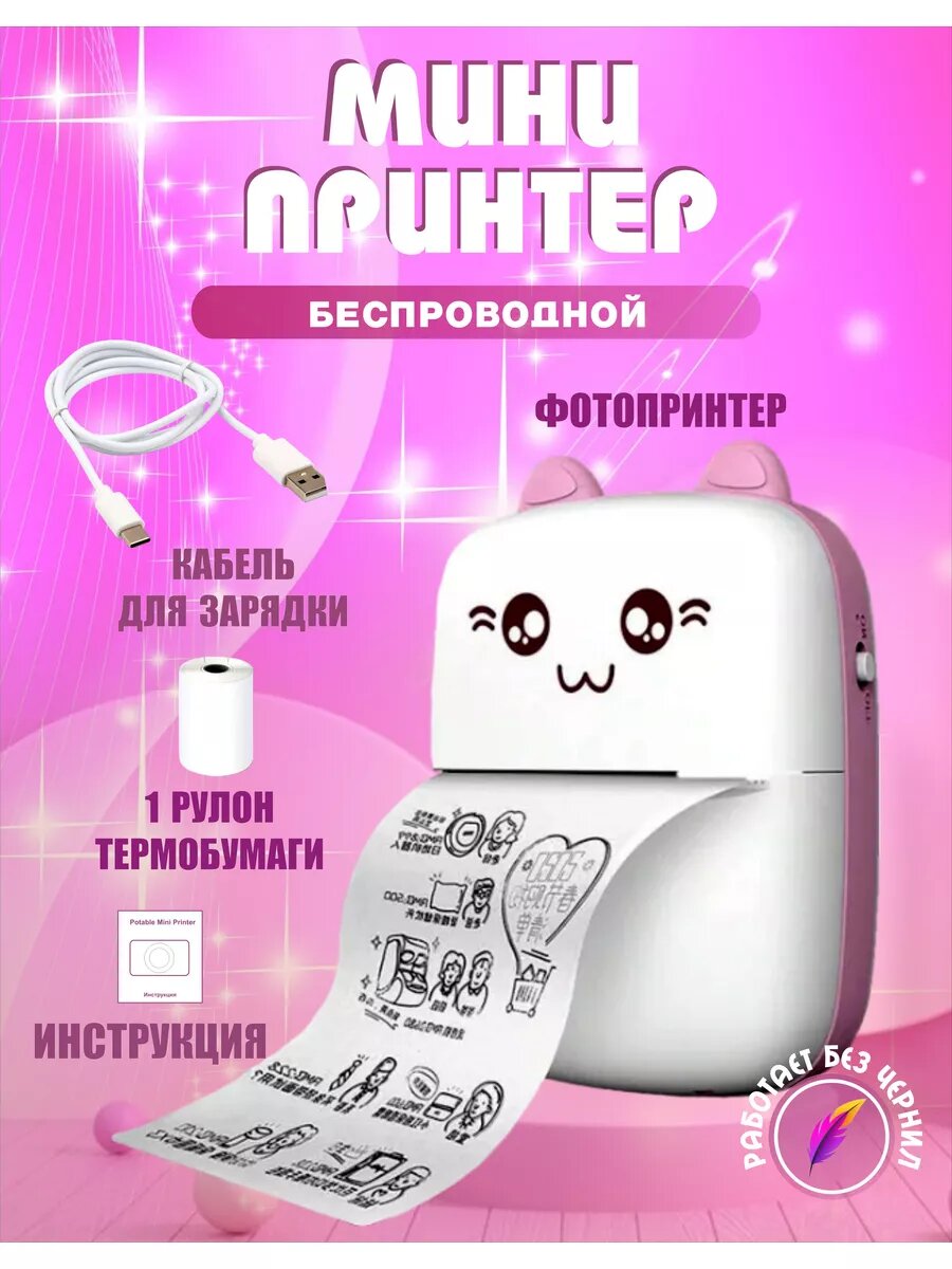 Удобный мини принтер для телефона портативный, (термопринтер детский для наклеек, мини-принтер), цвет светло-розовый интересное:
