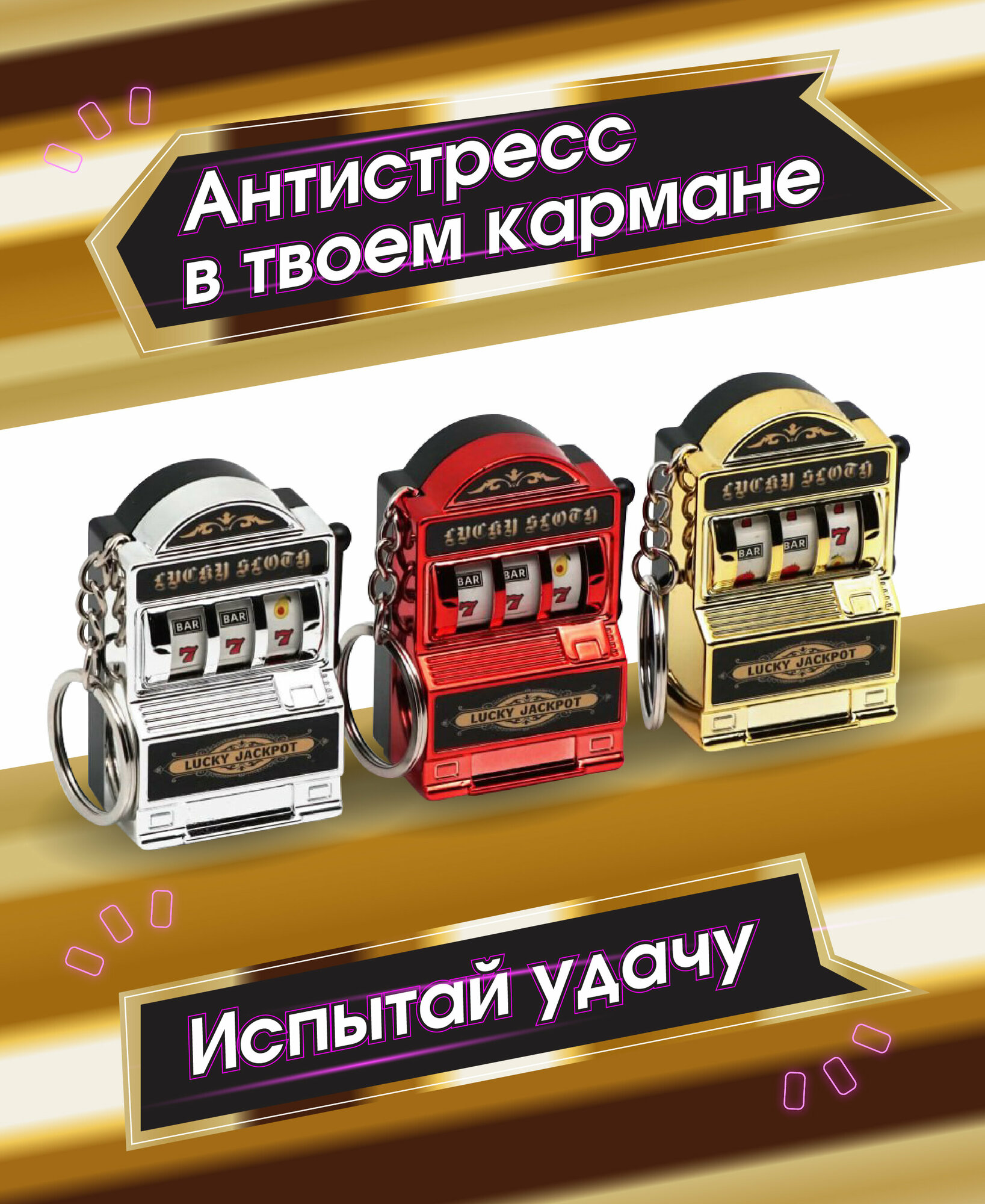 "Lucky Llama" - брелок "Игровой автомат", золотой