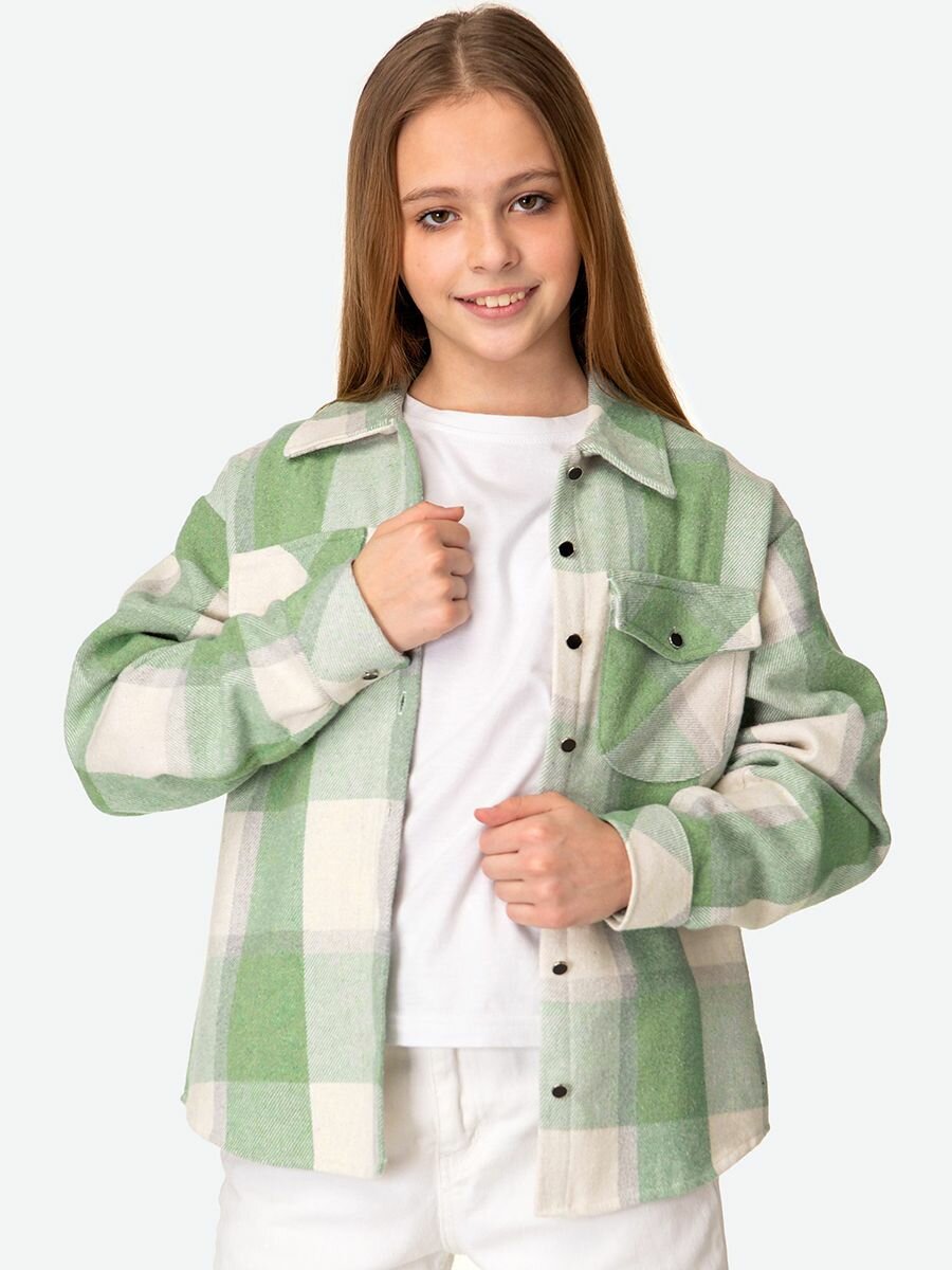 Рубашка Happyfox Для девочек, размер 140, полынь