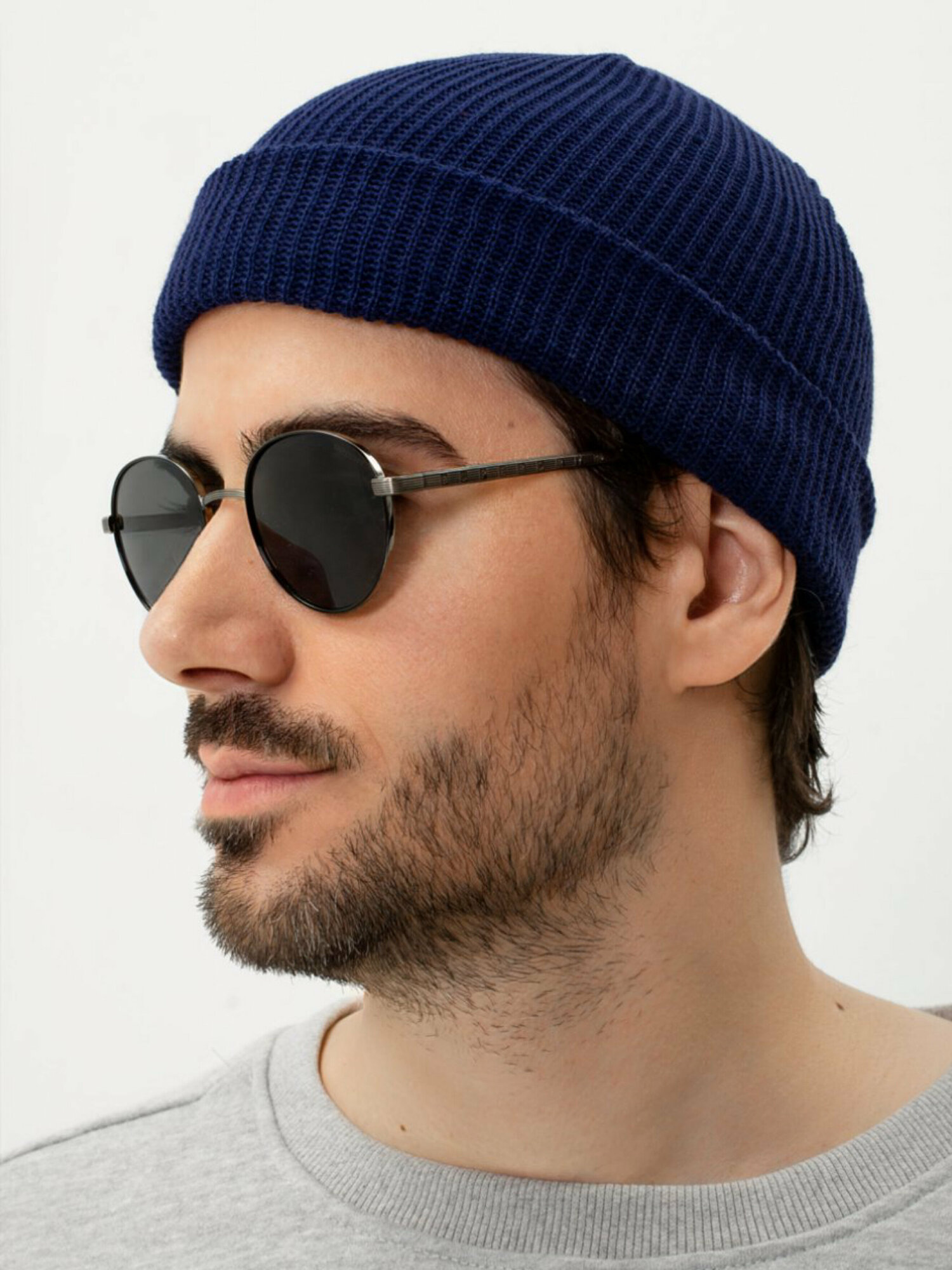 Шапка бини ; короткая шапка; подарок; подарок мужчине; шапка мужская; синяя