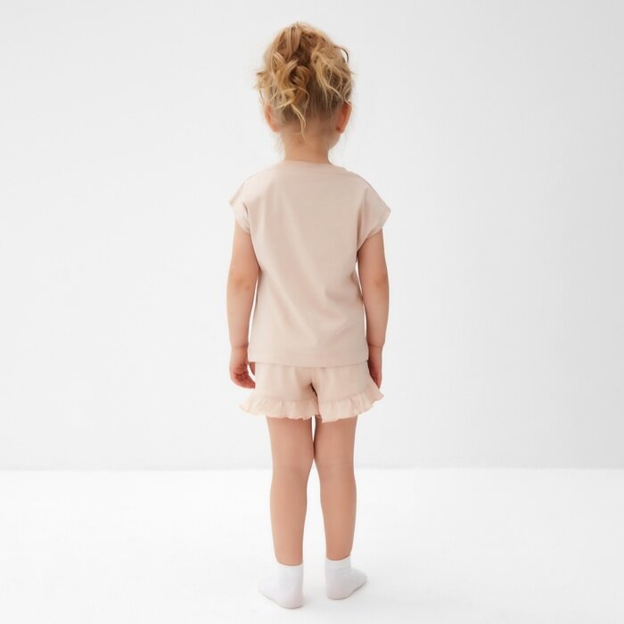 Купить Пижама для девочки (футболка и шорты) MINAKU, цвет бежевый, рост 116 см