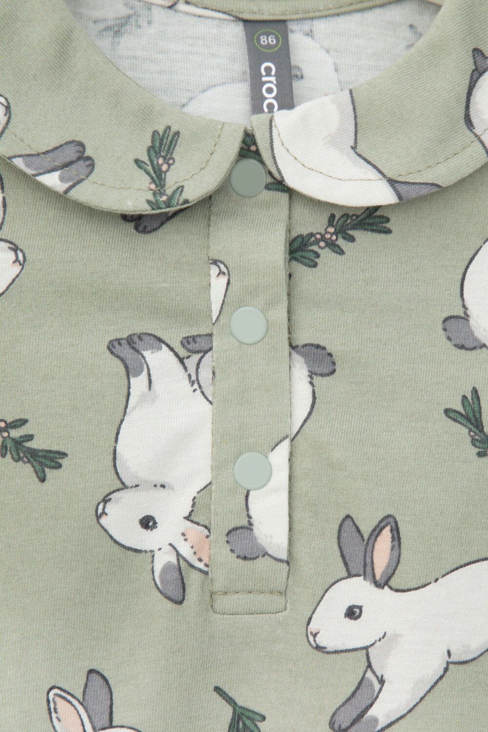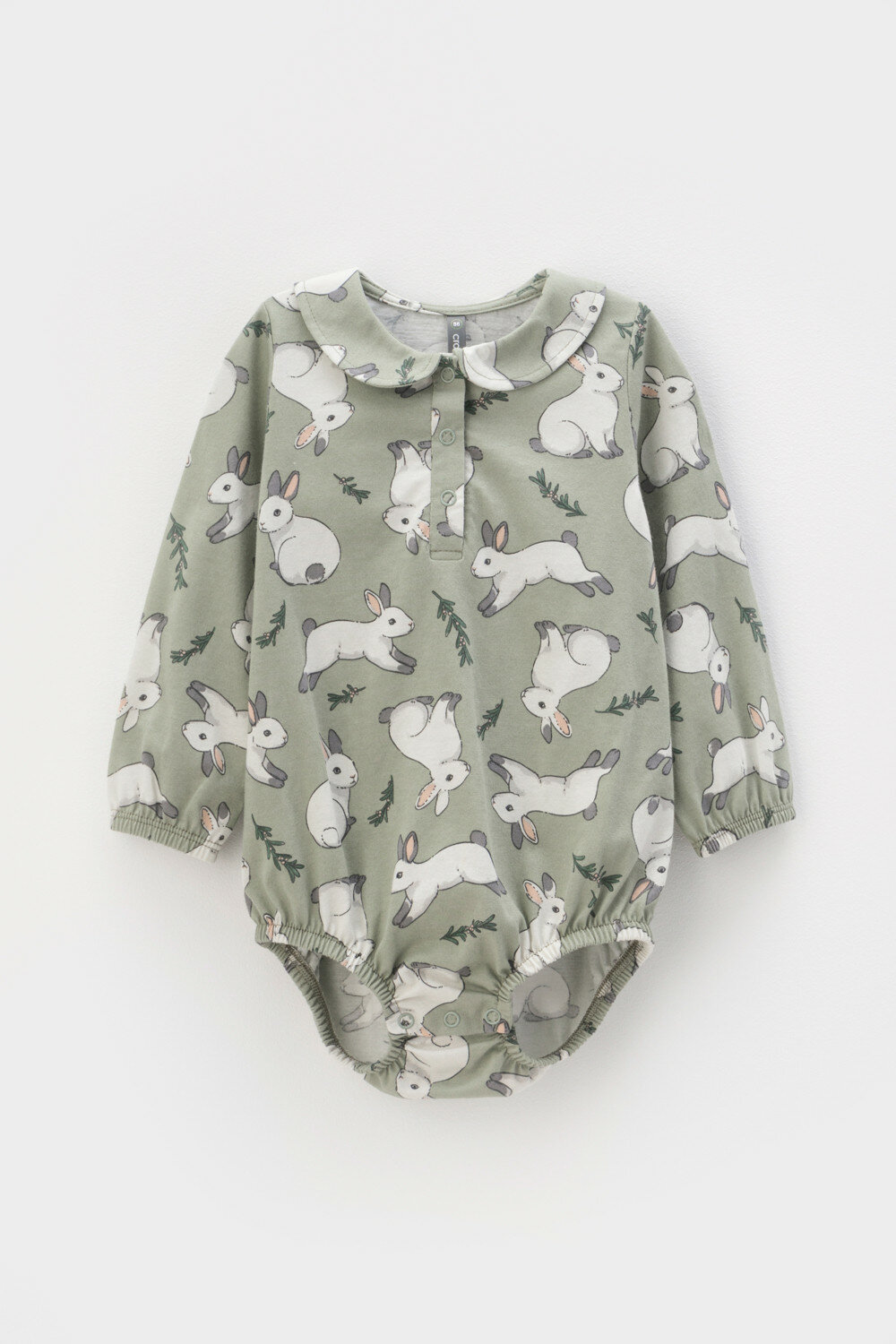 Боди для девочки с длинным рукавом из натурального хлопка, Crockid КР 6481/оливковый хаки,нежные зайчики к435 р 52/86