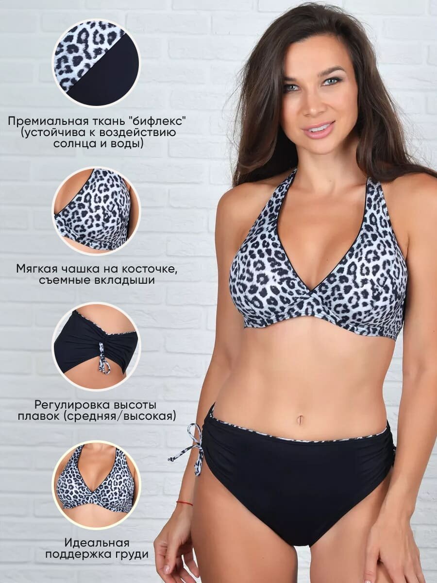 Купальник женский раздельный больших размеров MollenaLayers, на большую грудь, размер 46, белый, черный