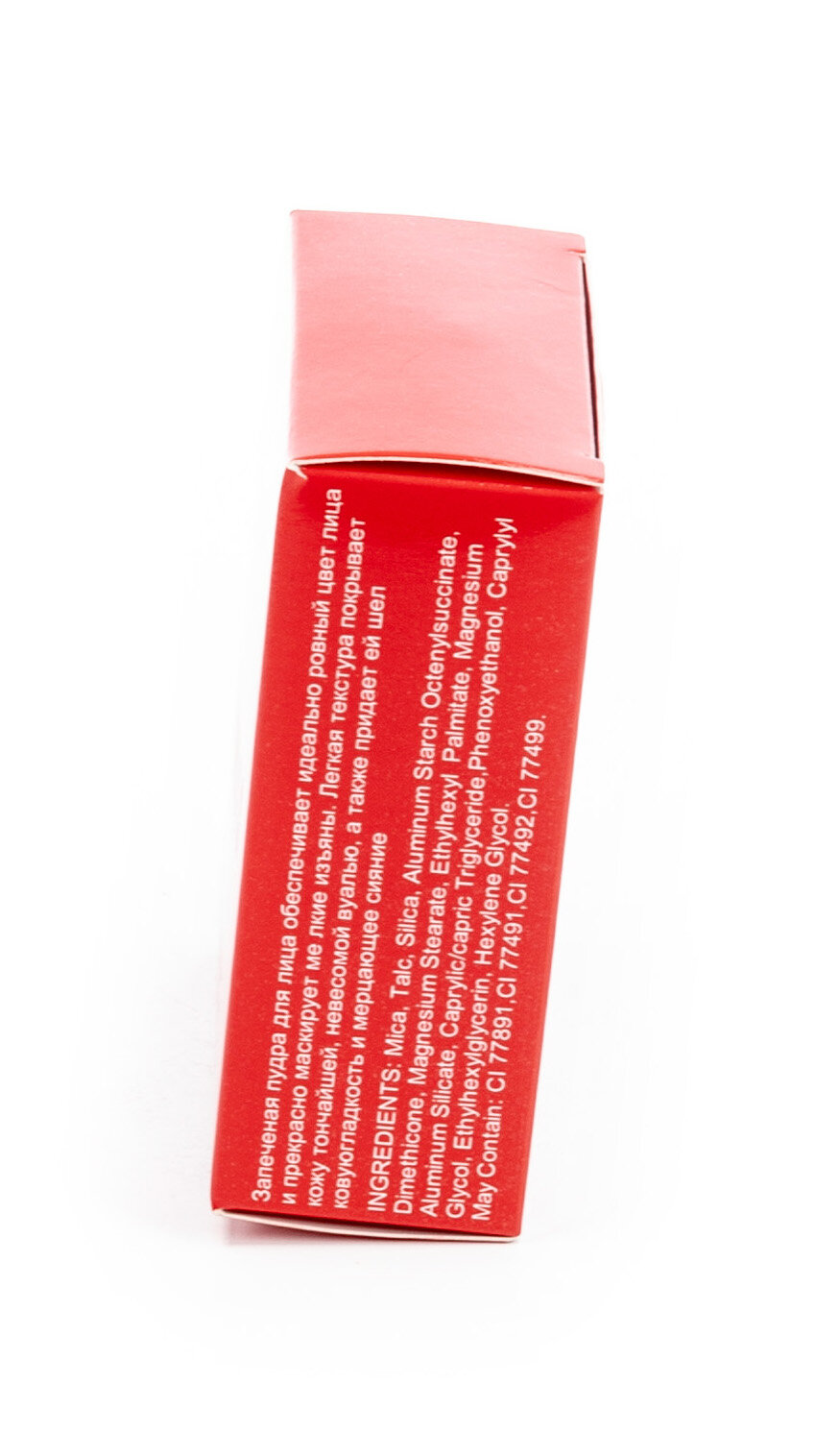| Состав | Mica, Talc, Silica, Aluminum Starch Octenylsuccinate, Dimethicone, Magnesium Stearate, Ethylhexyl Palmitate, Magnesium Aluminum Silicate, Caprylic/capric |