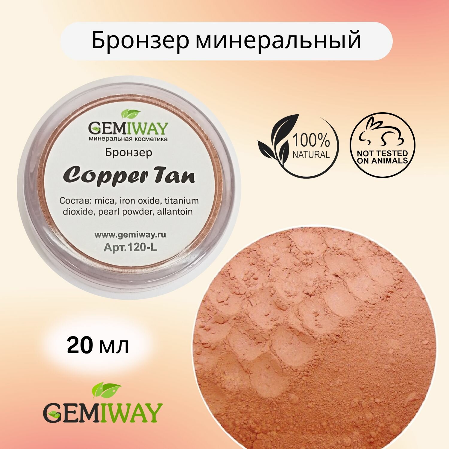 СохранитьБронзер минеральный "Copper Tan" GEMIWAY 20 мл / 4 г . Рассыпчатый, натуральный бронзер для лица интересное: