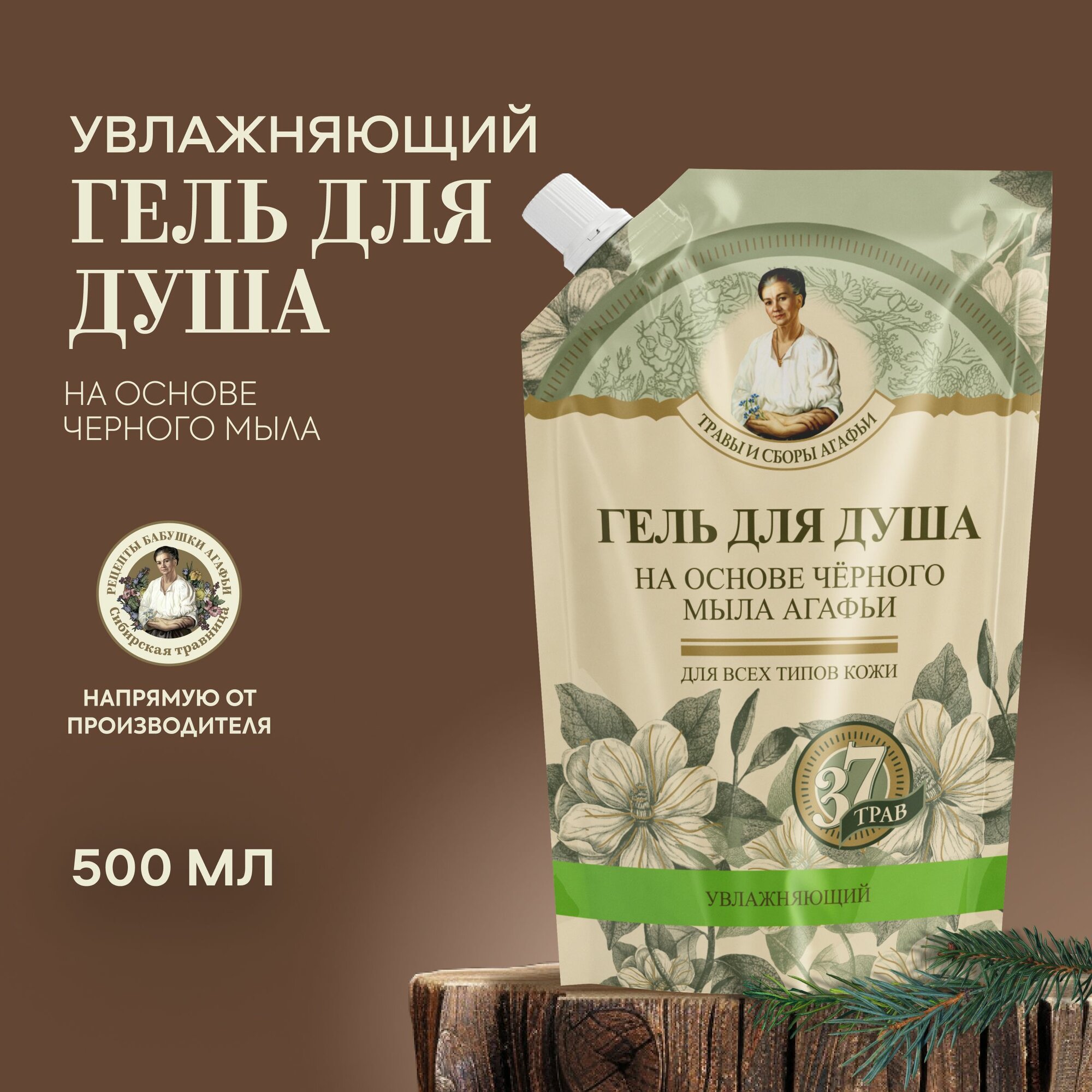 Травы и сборы на черном мыле Агафьи Гель для душа увлажняющий дой-пак 500 мл