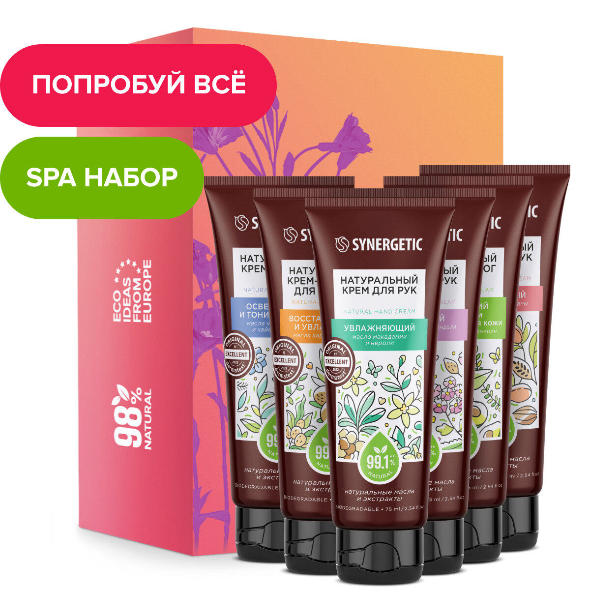 Подарочный набор натуральных кремов для рук/ног SYNERGETIC ассорти, 75 мл, 6 штук интересное: