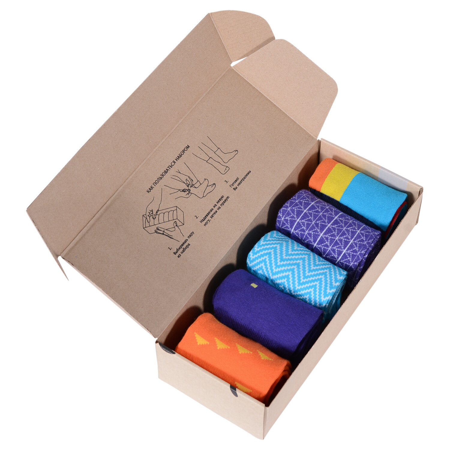 НС-5-205 Набор из 5 пар мужских носков "Нева-Сокс" принт рисунок яркие цветные разноцветные повседневные длинные высокие средние хлопок хб хлопковые коробка комплект подарок