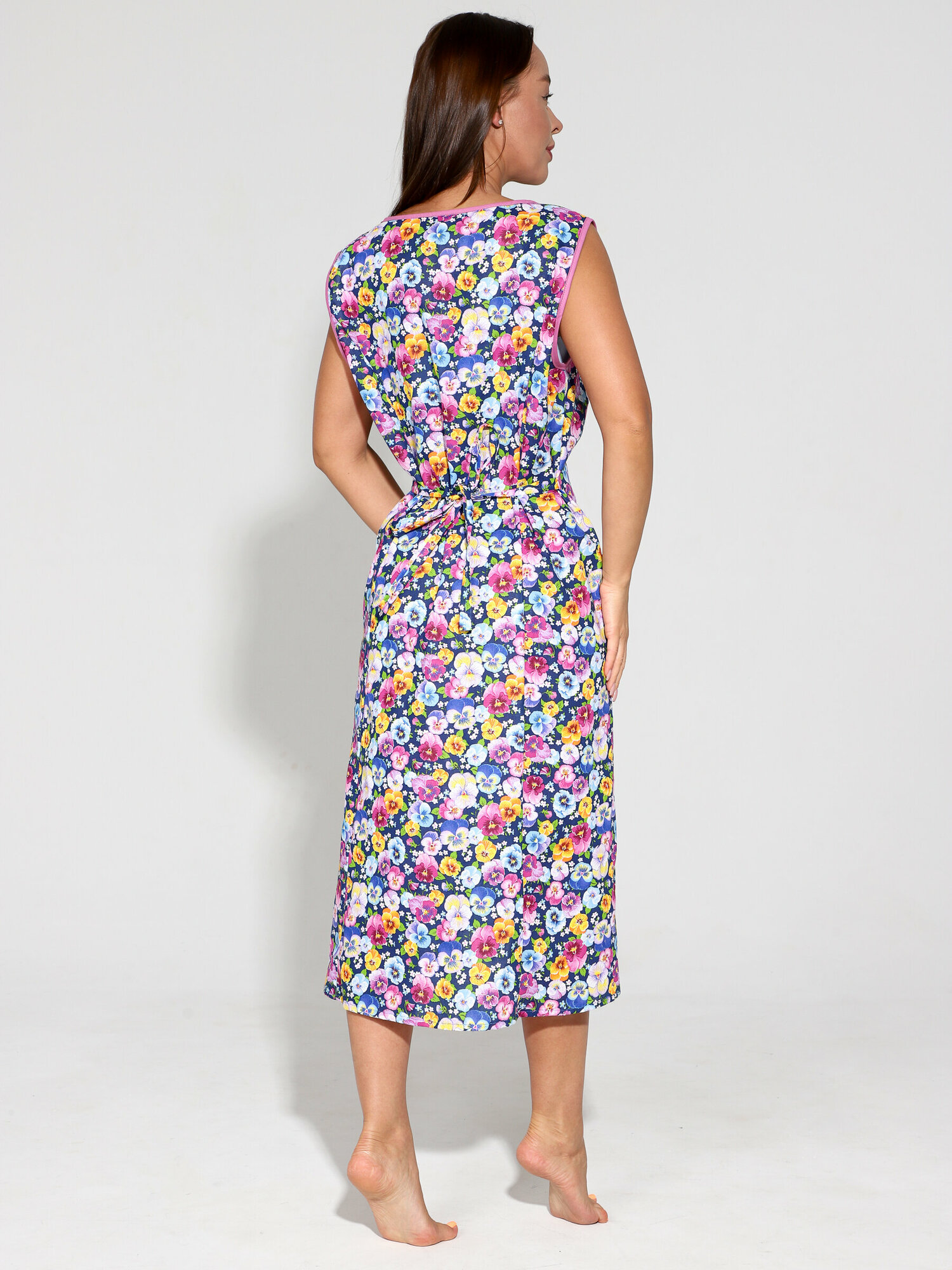Халат домашний женский на молнии фиолетовые фиалки размер 50