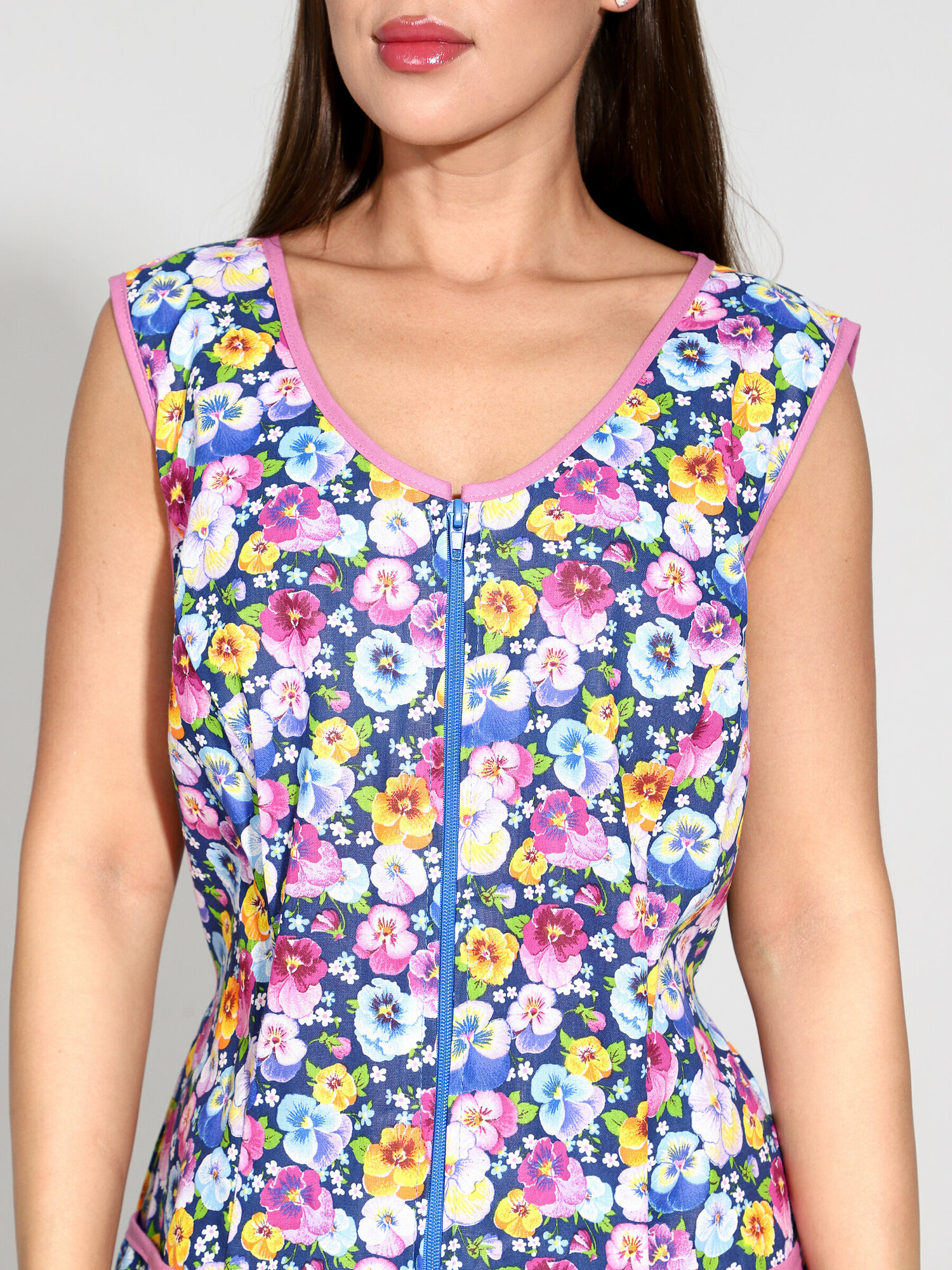 Халат домашний женский на молнии фиолетовые фиалки размер 60