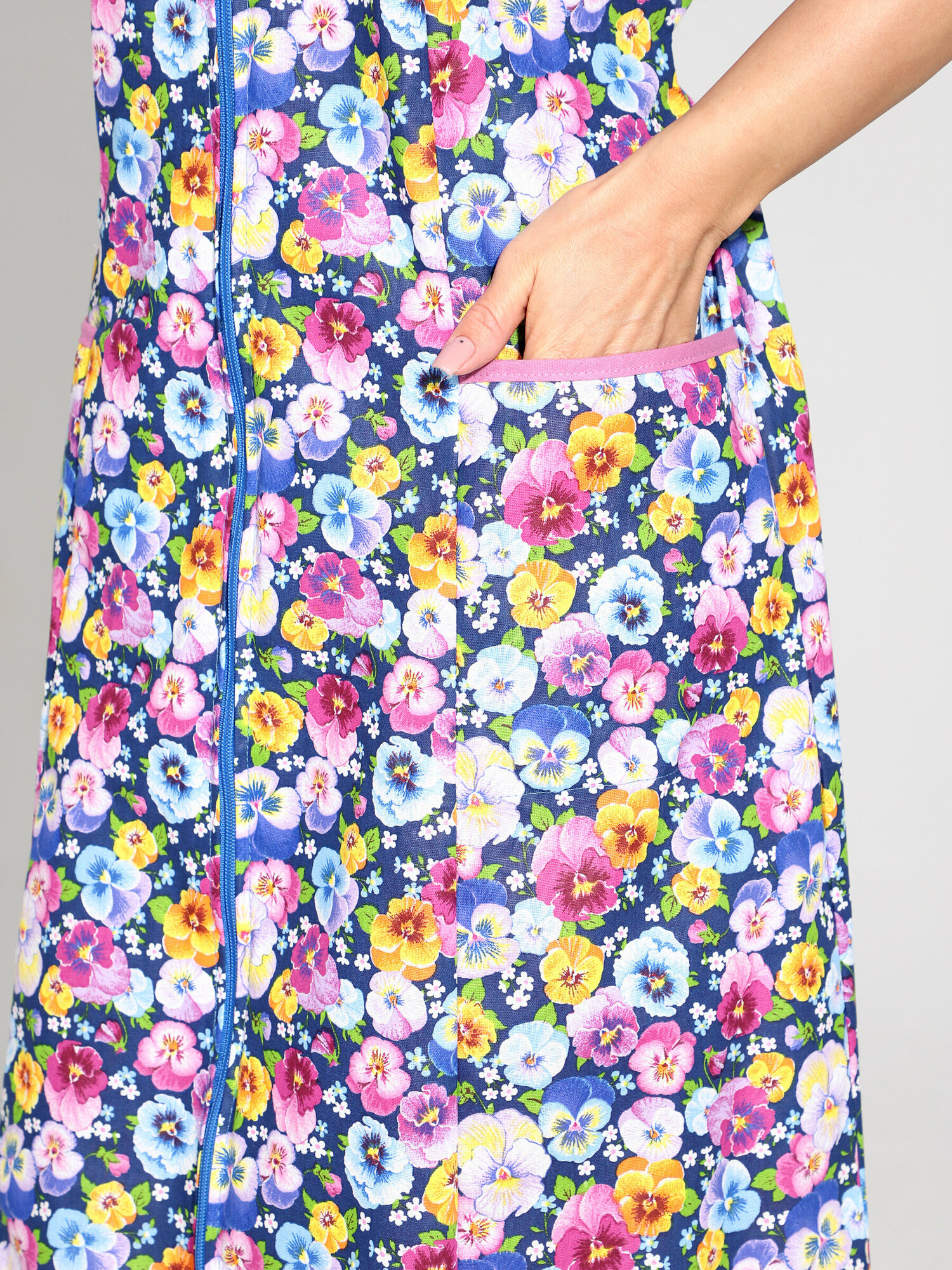 Халат домашний женский на молнии синий шиповник размер 50
