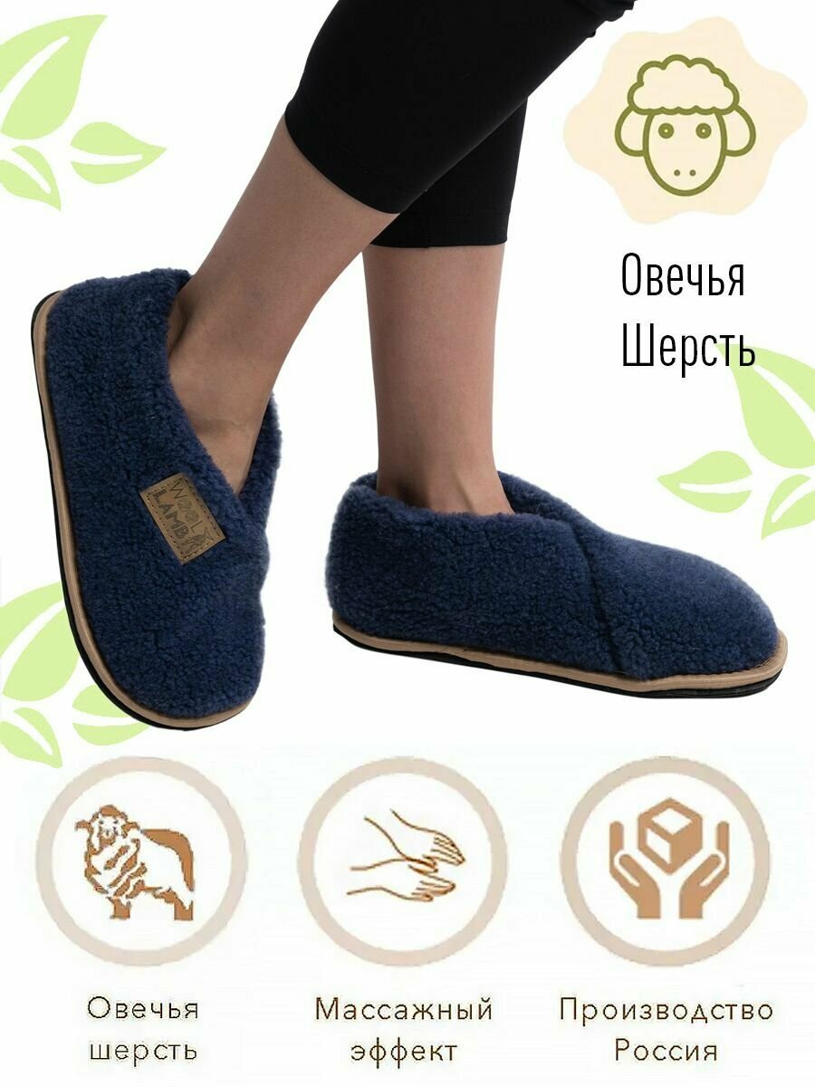 Купить Теплуши меховые WOOLLAMB индиго на войлочной подошве, 40-41