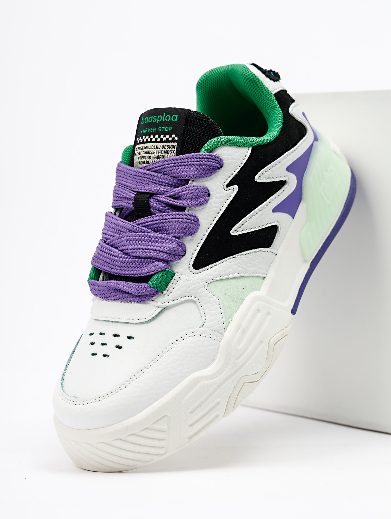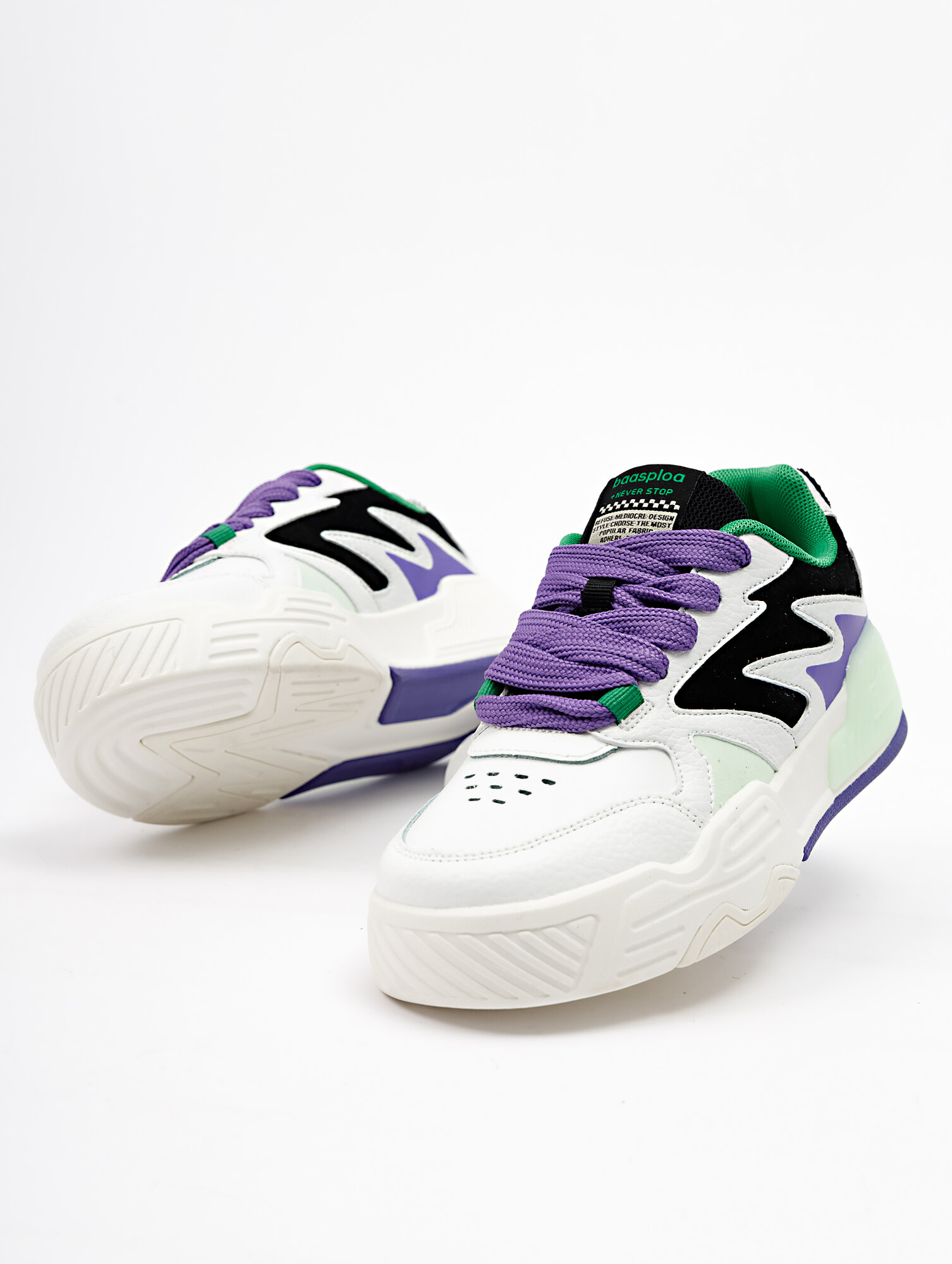 СохранитьЖенские кроссовки BAASPLOA белые с фиолетовыми и зелеными вставками 38 размер интересное: